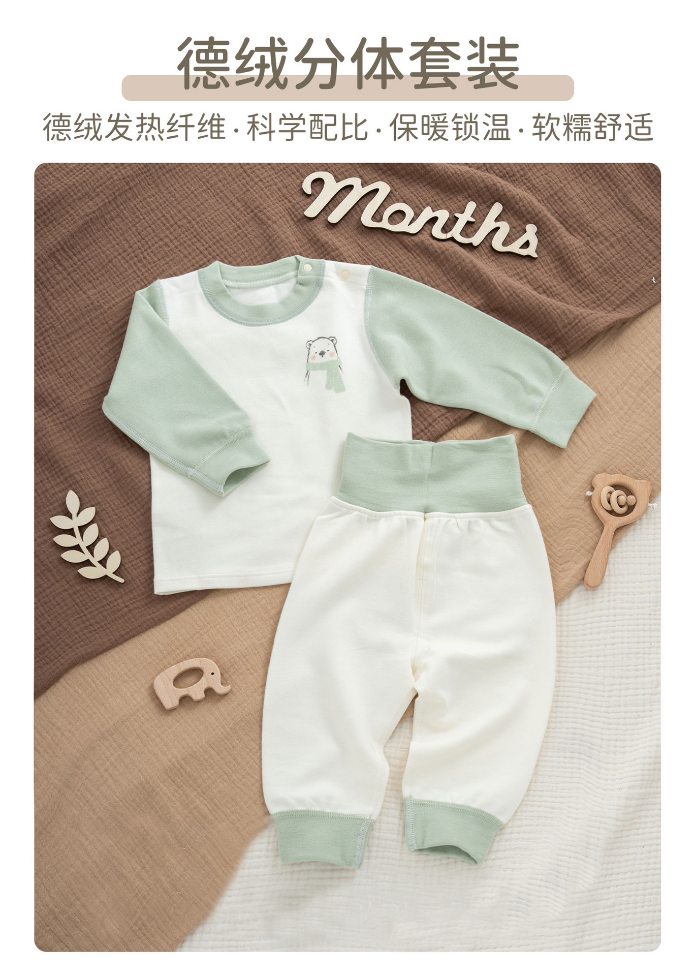 소년 소녀 아기 겨울 클래스 벨벳 난방 따뜻한 세트 분할 아기베이스 속옷 잠옷 오픈 파일 배꼽 보호