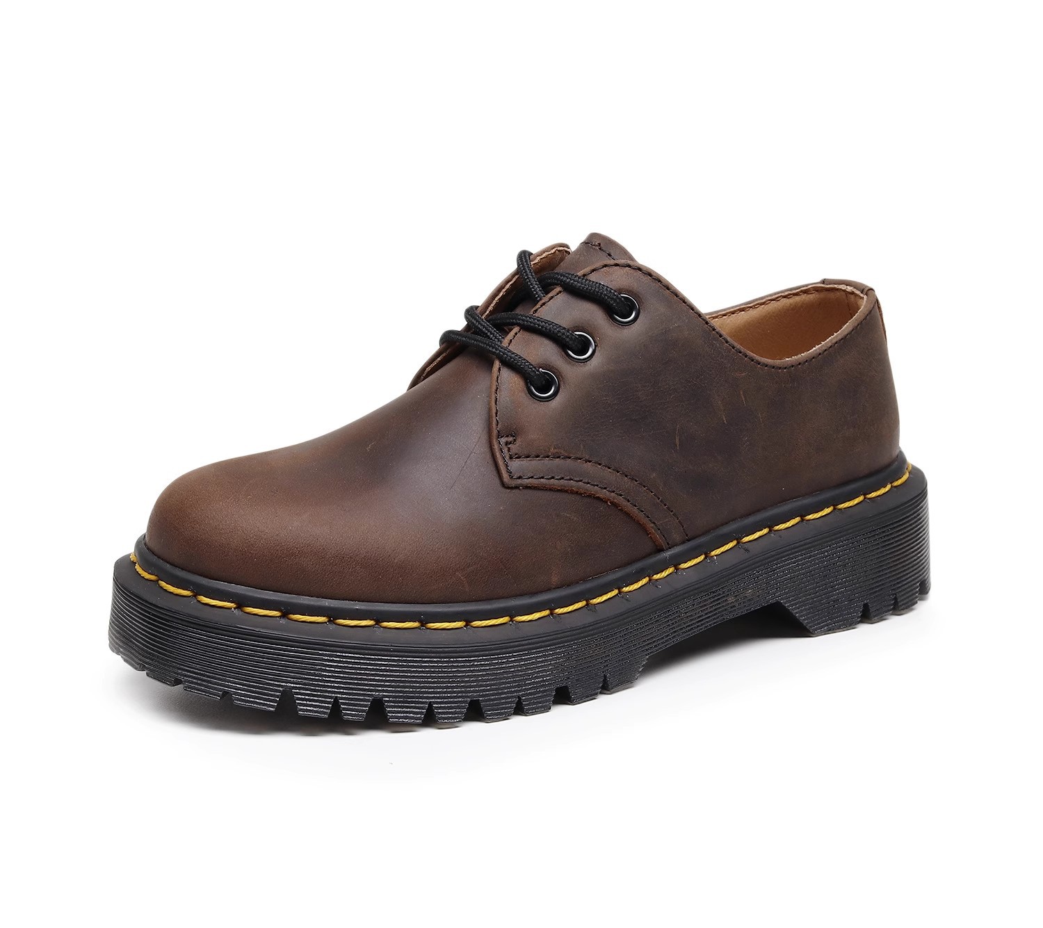 가을과 겨울 1461 로우 컷 중간 두꺼운 가죽 신발 여성용 미친 말 다크 브라운 플러스 사이즈 발목 부츠 라운드 발가락 남성용 캐주얼 통기성 작업복 신발스토어 가기