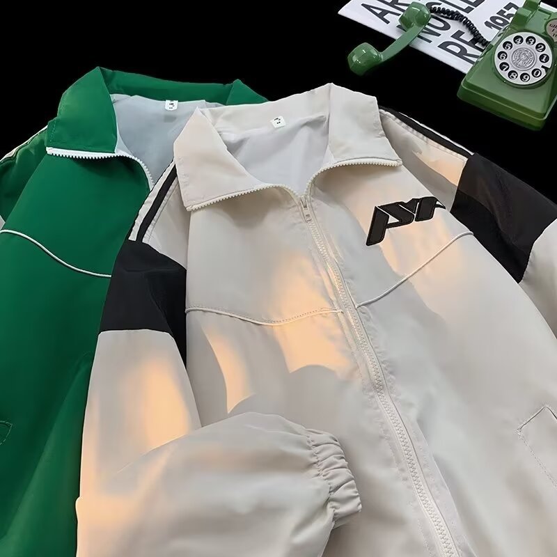 2023 봄과 가을 새로운 스타일 수직 칼라 야구 세트 남성용 패셔너블 루즈 올 매치 아메리칸 스타일 패셔너블 브랜드 뉴 스타일 핸섬 워크 재킷스토어 가기
