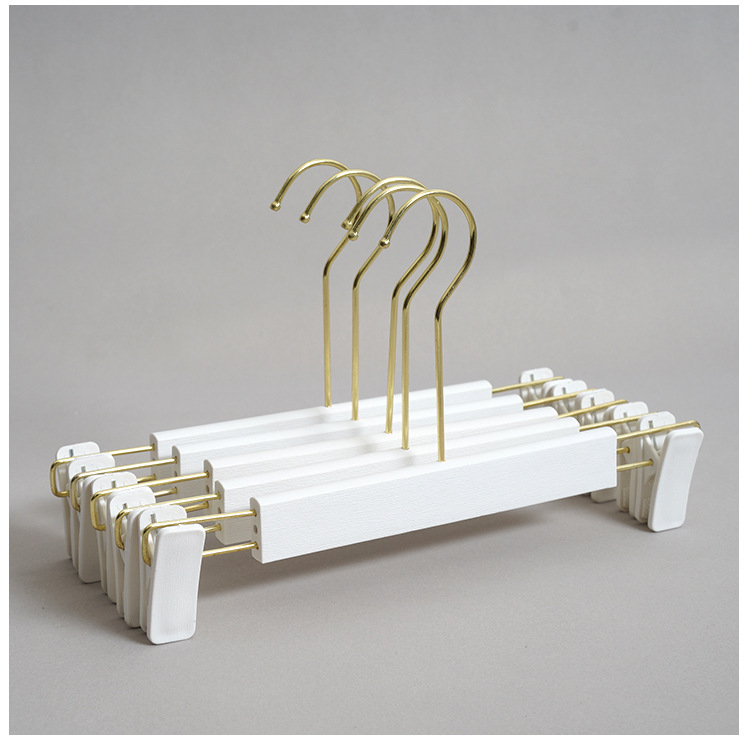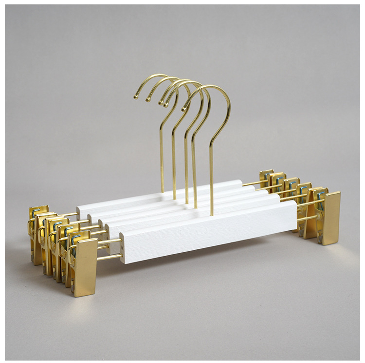 • 브러시 처리된 바지 걸이 흰색 플라스틱 클립 - 10cm 금색 원형 후크