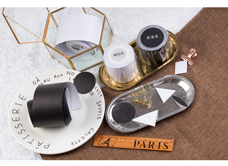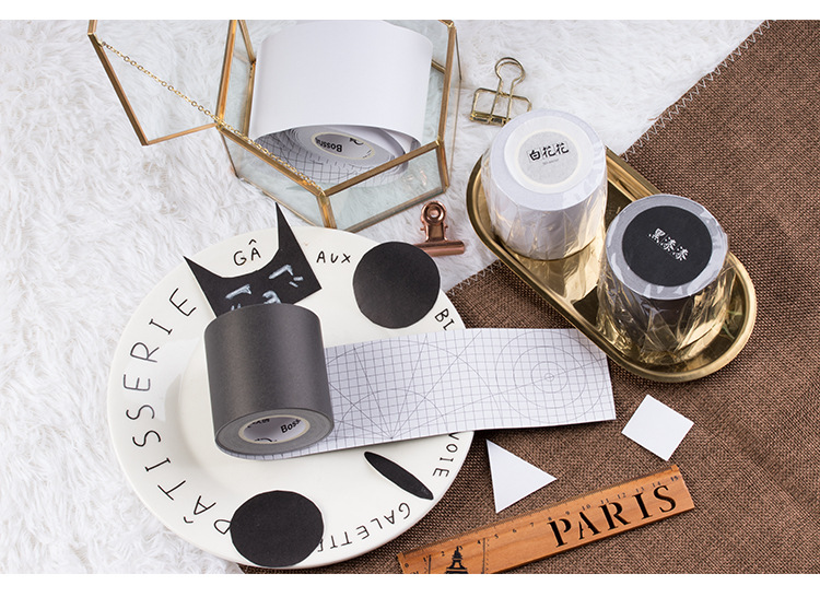 손 계정 테이프 백 테이프 및 종이 기본 손 계정 도구 손 계정 소재 DIY 장식 흑백 하단 스티커스토어 가기