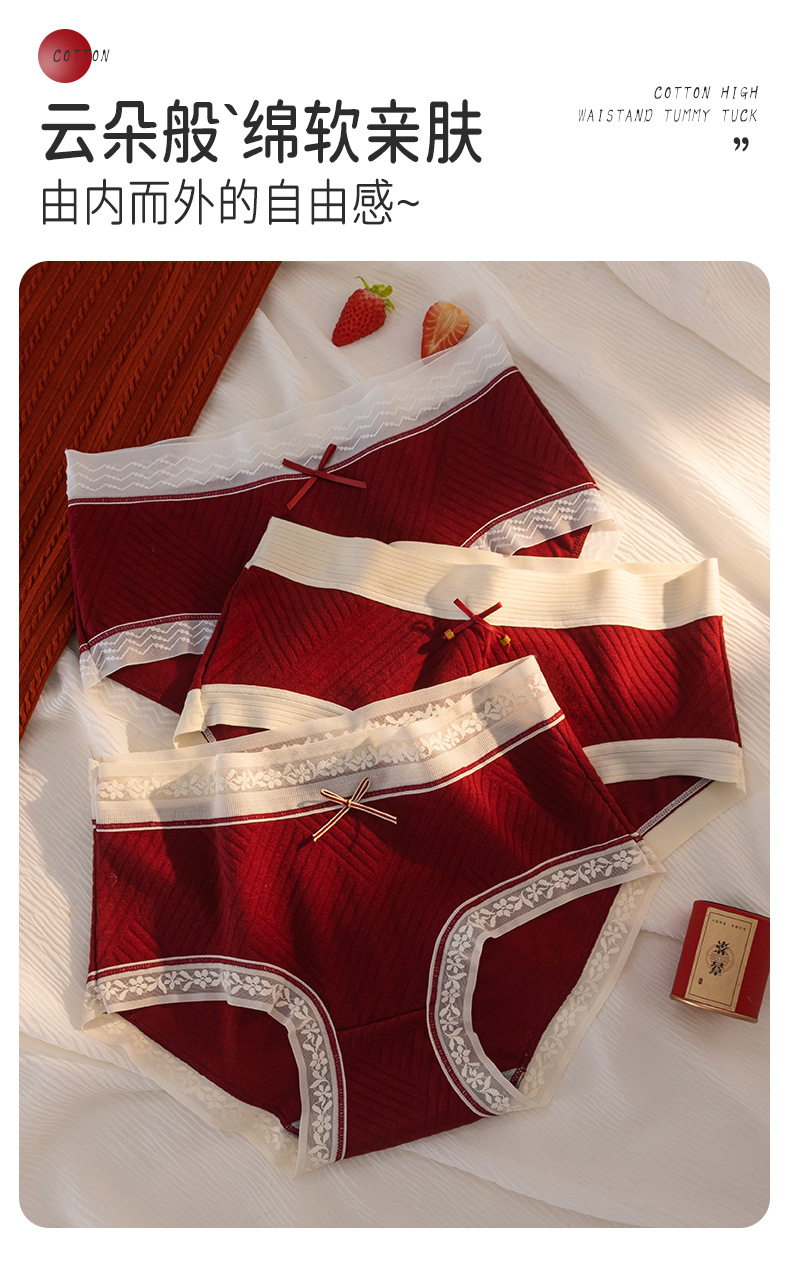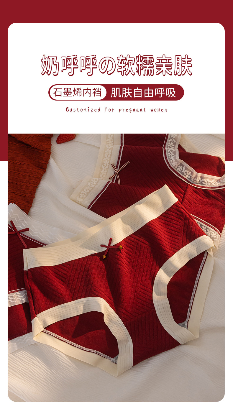 브림 니안 퓨어 코튼 속옷 레드 여성용 미드 웨이스트 트랙리스 통기성 그래핀 5A 박테리아 크로트 플러스 사이즈 여성 브리프스토어 가기