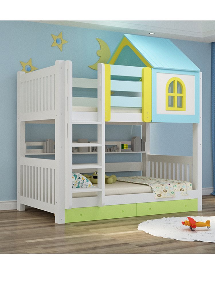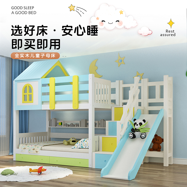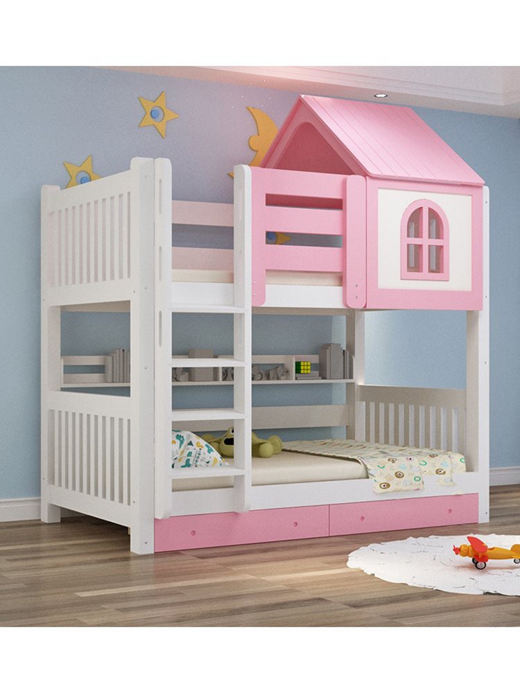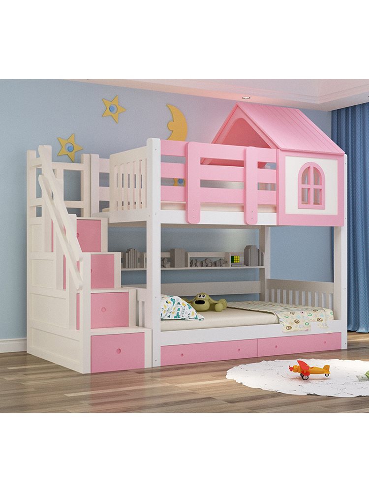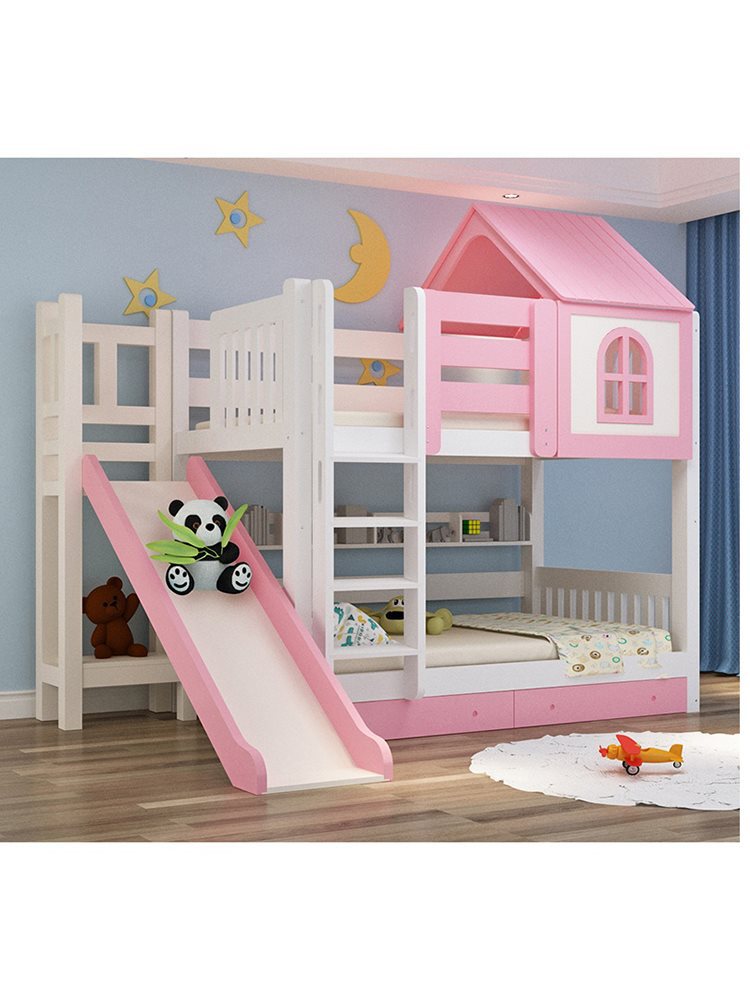G * 어린이 침대 이층 단단한 나무 침대 이층 침대 소년 높고 낮은 침대 슬라이딩 사다리 침대 성 침대 작은 아파트 침대 조합스토어 가기