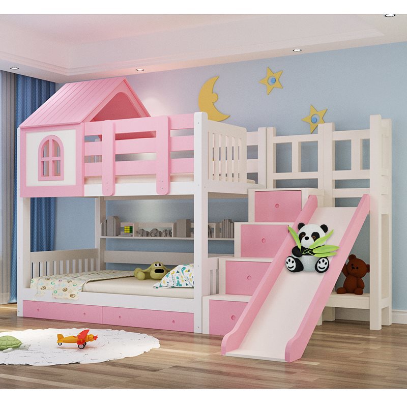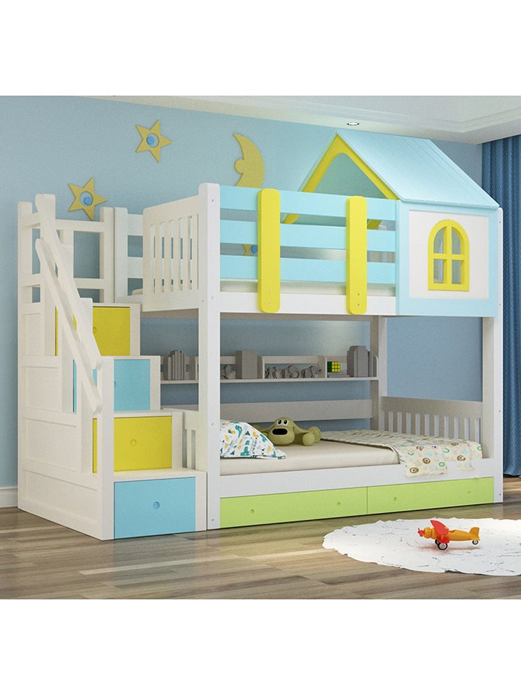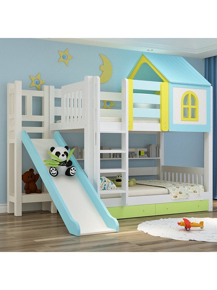G * 어린이 침대 이층 단단한 나무 침대 이층 침대 소년 높고 낮은 침대 슬라이딩 사다리 침대 성 침대 작은 아파트 침대 조합
