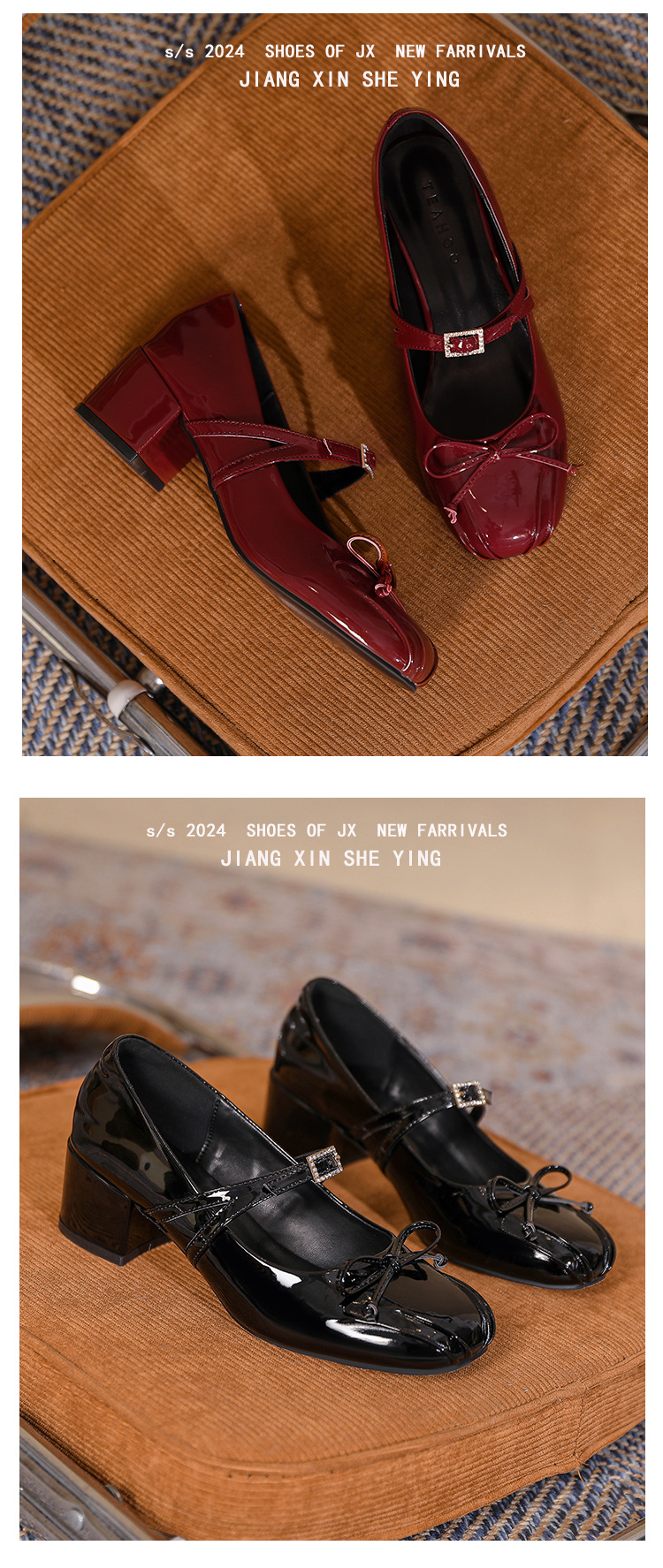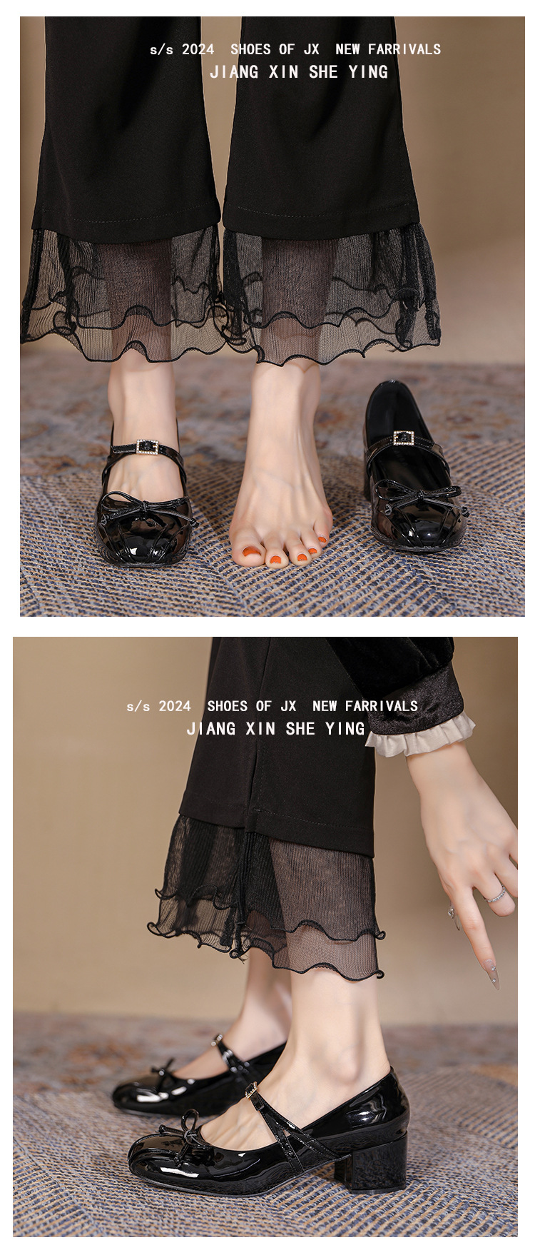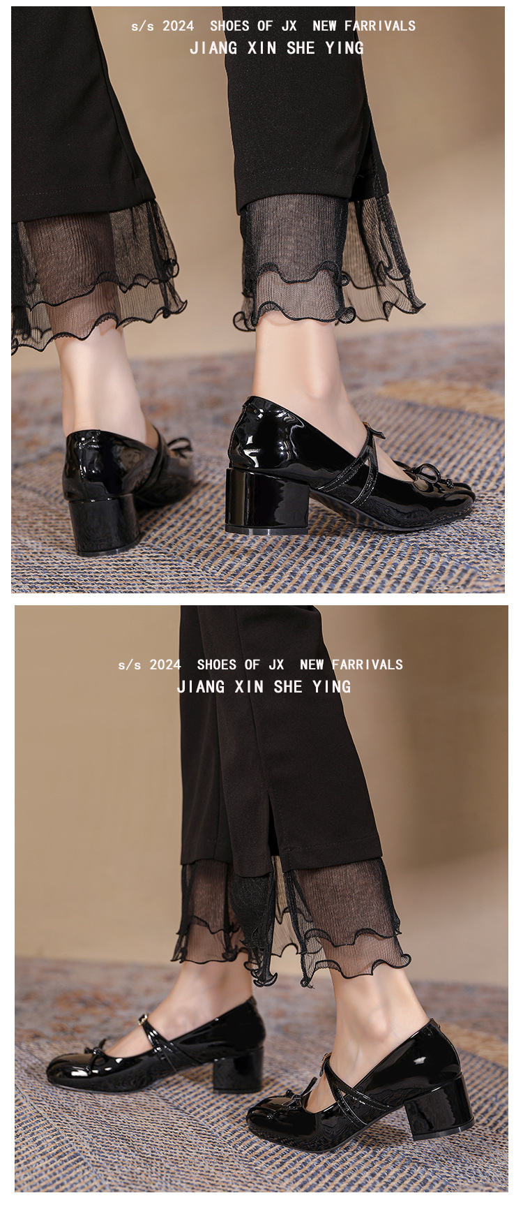 블랙 메리 제인 신발 여성의 가을과 겨울 새로운 프랑스 미드 힐 라운드 발가락 활 패션 라인스톤 얕은 입 캐주얼 신발스토어 가기