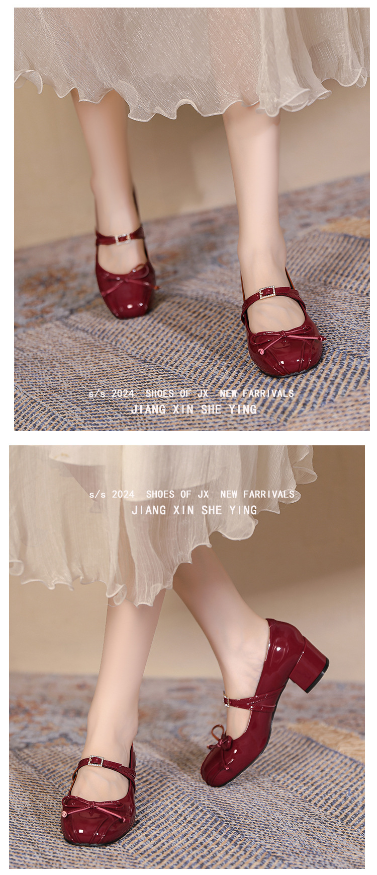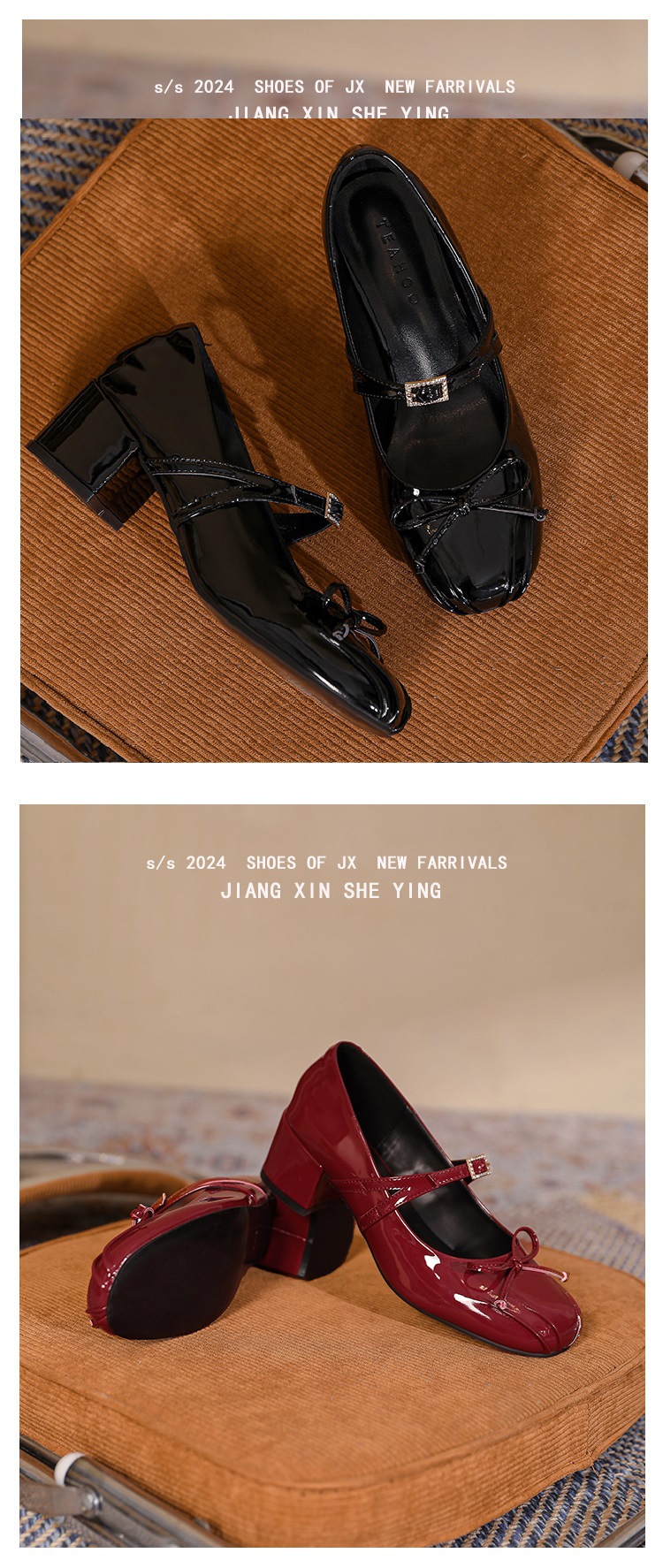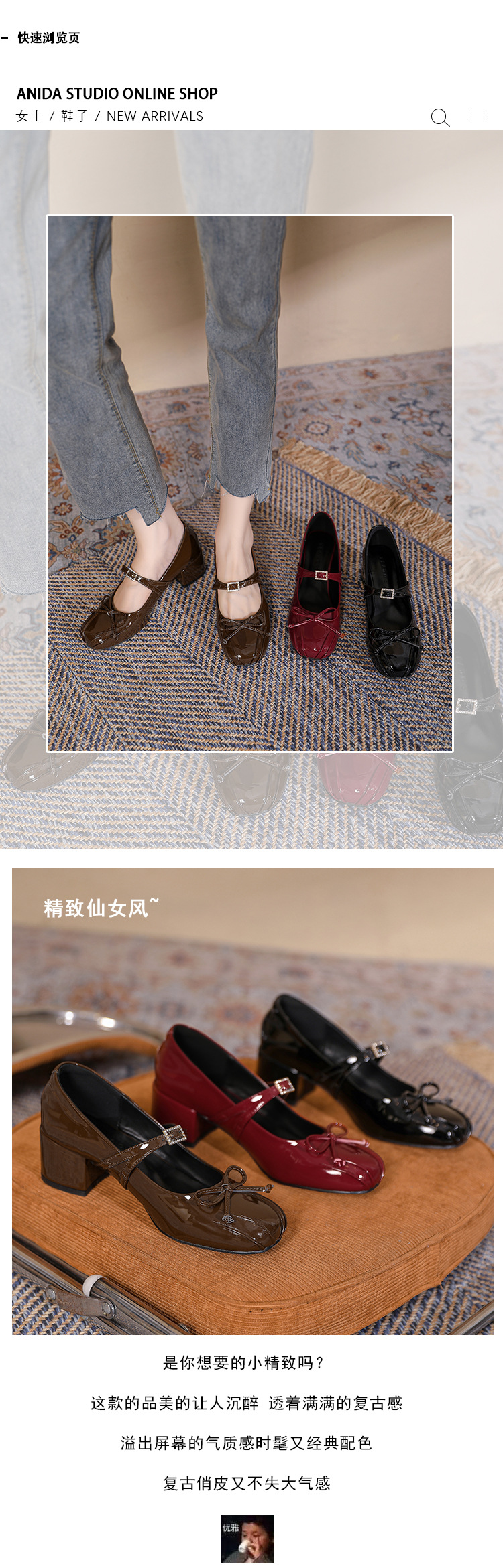 블랙 메리 제인 신발 여성의 가을과 겨울 새로운 프랑스 미드 힐 라운드 발가락 활 패션 라인스톤 얕은 입 캐주얼 신발스토어 가기