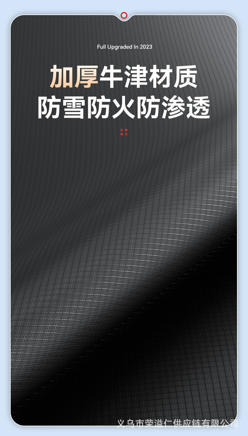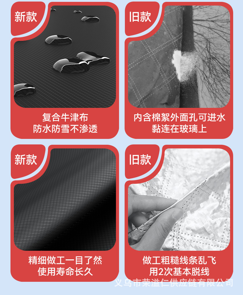 1、牛津布材质,不伤车漆,防晒、隔热、防雨雪、防风尘、防划痕、抗拉力强。