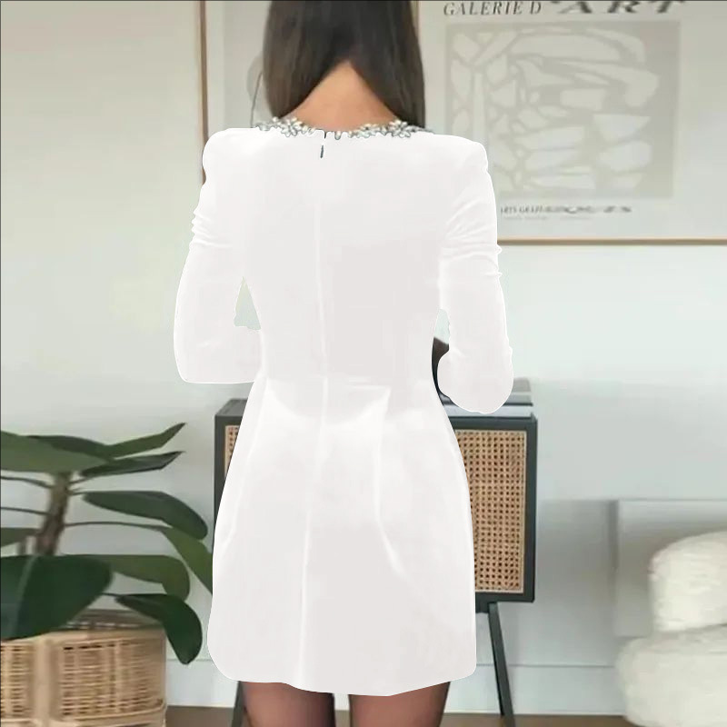 2024 봄과 여름 블랙 벨벳 슬림 핏 다이아몬드 패션 긴 소매 짧은 단색 사각 칼라 원피스 유럽과 미국 여성 의류스토어 가기