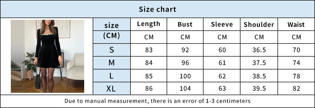 2024 봄과 여름 블랙 벨벳 슬림 핏 다이아몬드 패션 긴 소매 짧은 단색 사각 칼라 원피스 유럽과 미국 여성 의류