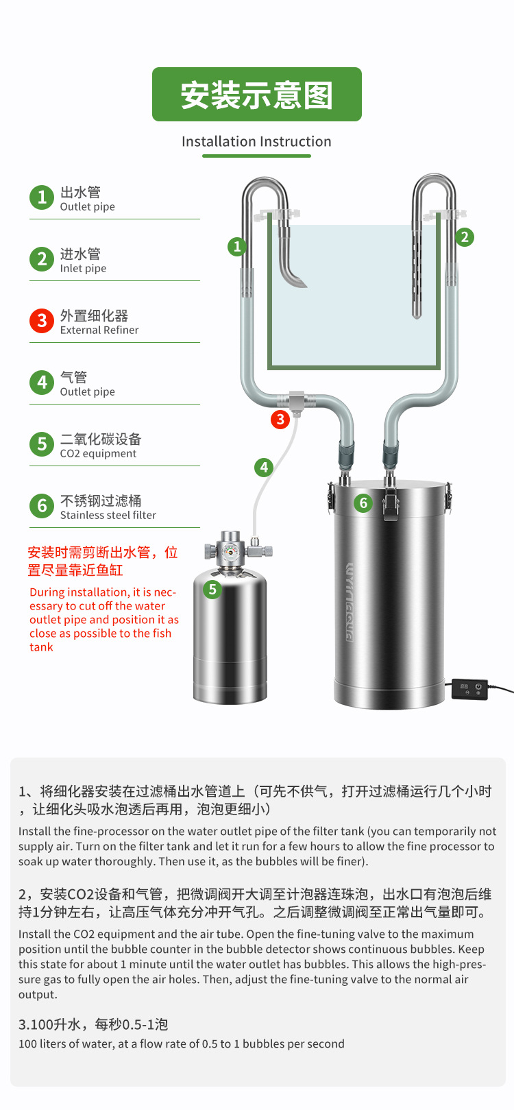 ZRDR 수족관 어항 이산화탄소 발생기 미세화기 CO2 수초 어항 외부 확산 분무기