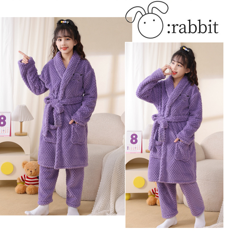 어린이 잠옷 가을과 겨울 소년 목욕 가운 산호 양털 두꺼운 플란넬 큰 아이 십대 홈 옷 잠옷