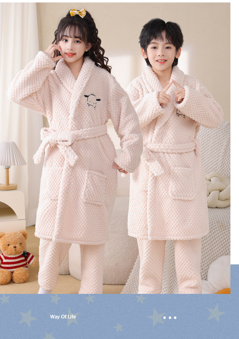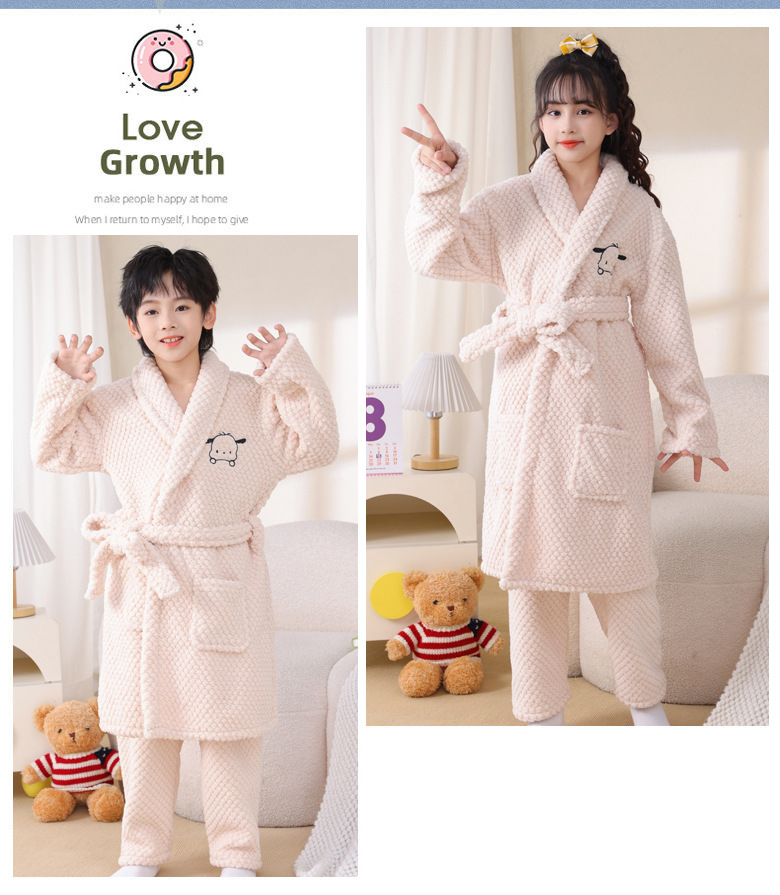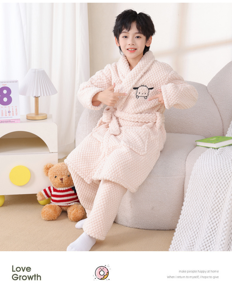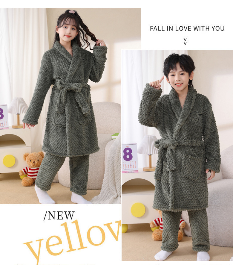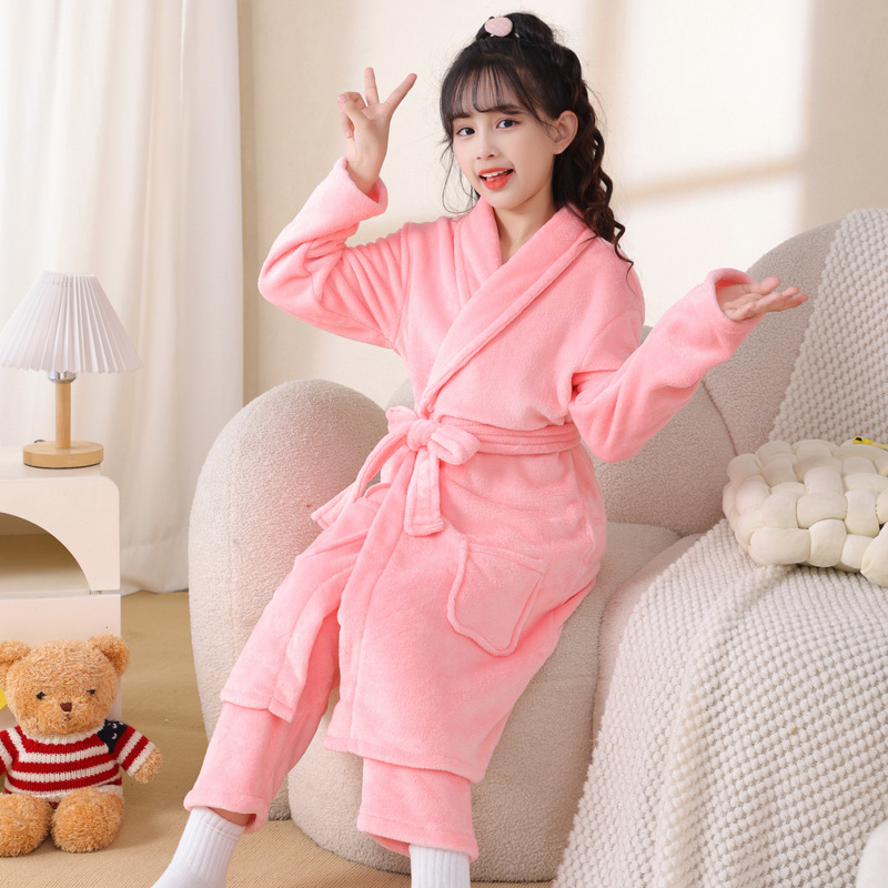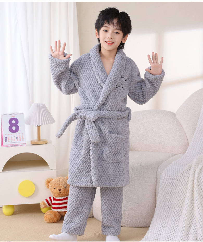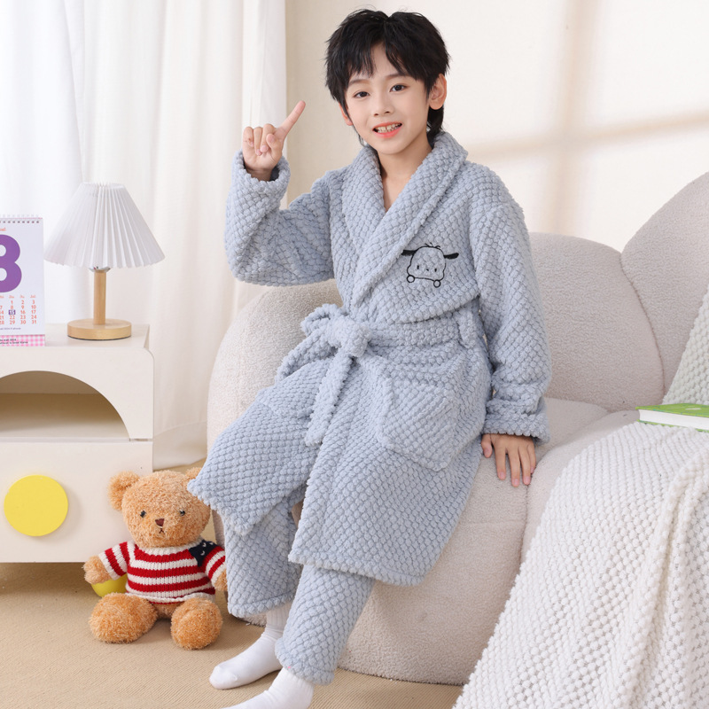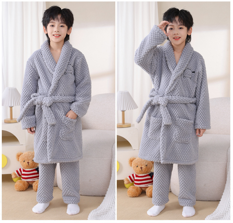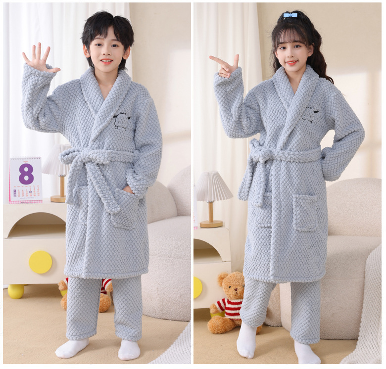 어린이 잠옷 가을과 겨울 소년 목욕 가운 산호 양털 두꺼운 플란넬 큰 아이 십대 홈 옷 잠옷스토어 가기