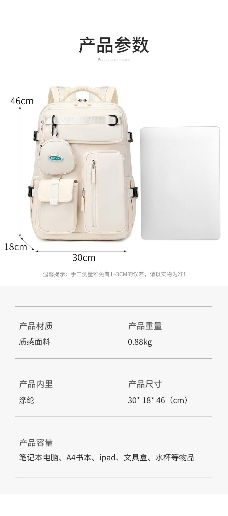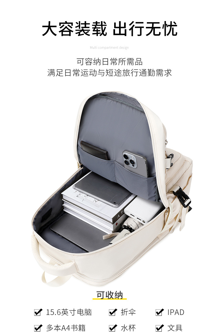 국경을 넘는 컴퓨터 백팩, 출장 및 여행용, 대용량, 다기능, 방수, 건식 및 습식 분리 수납, 학생용 가방