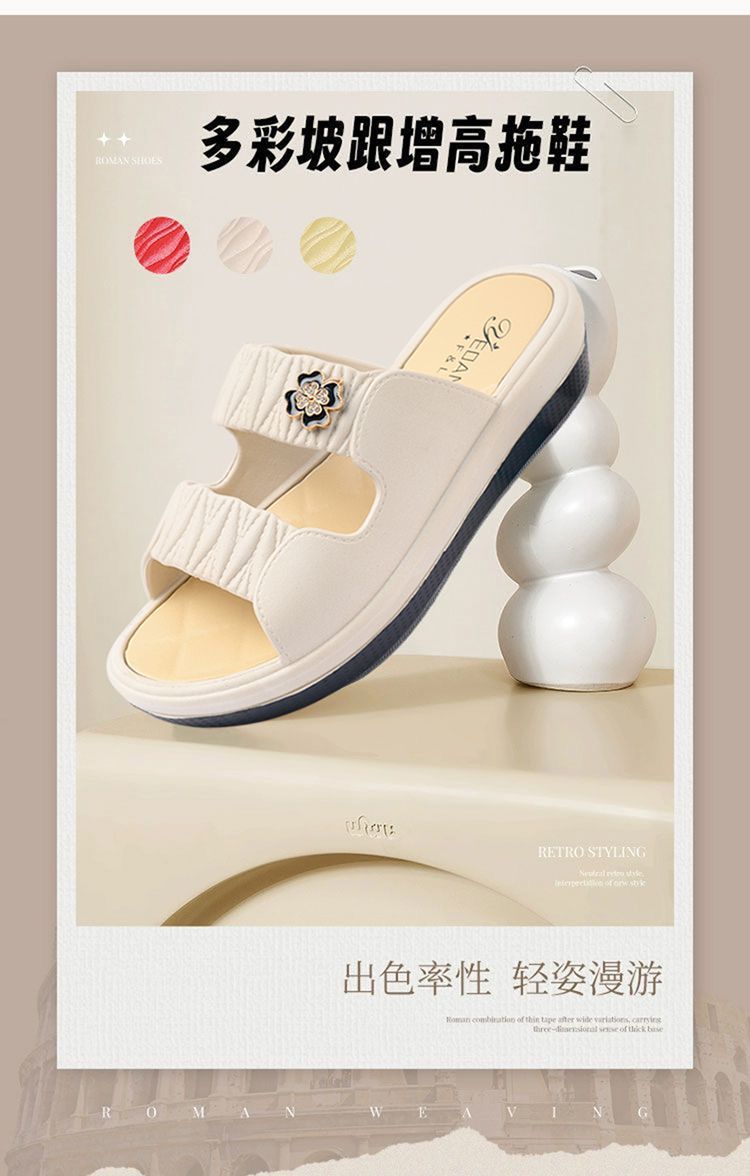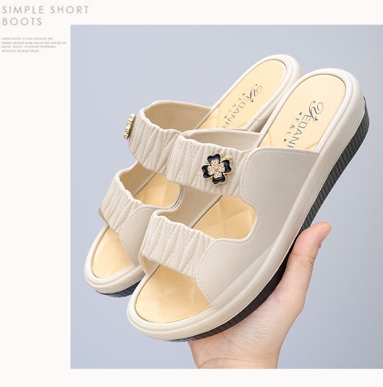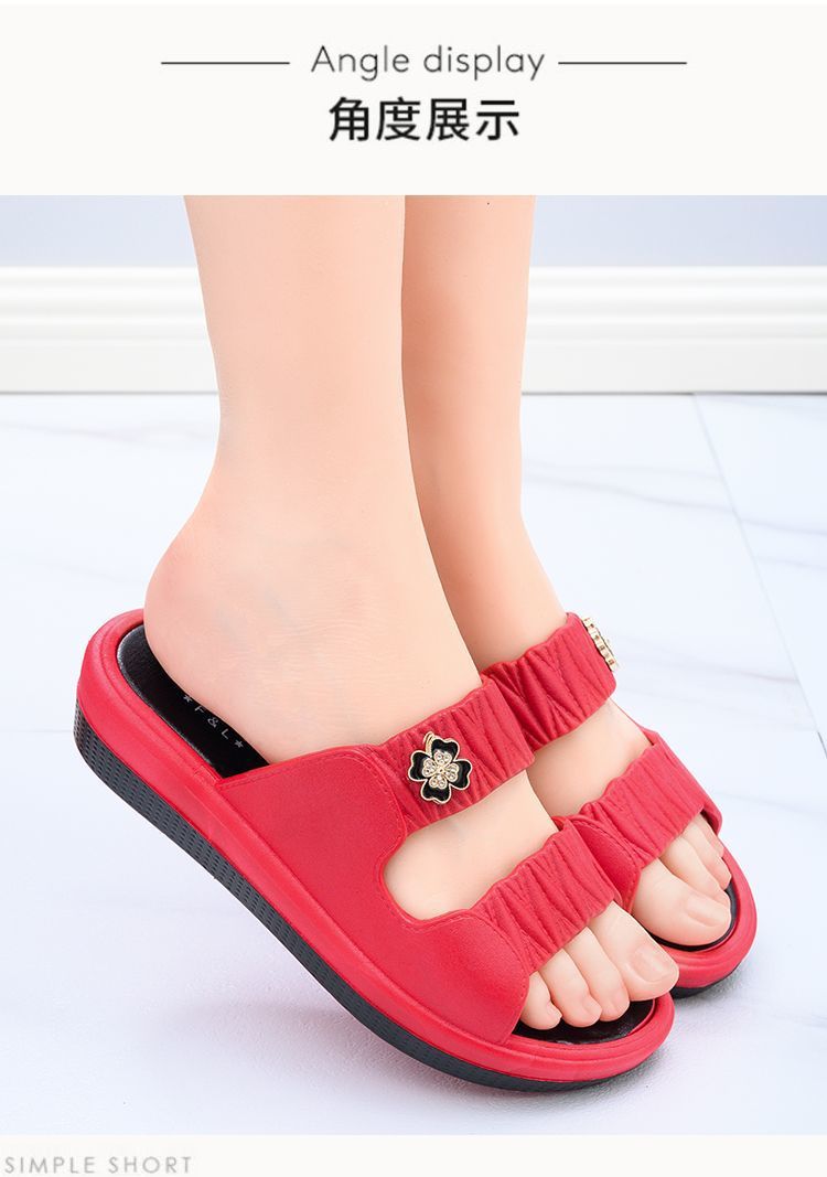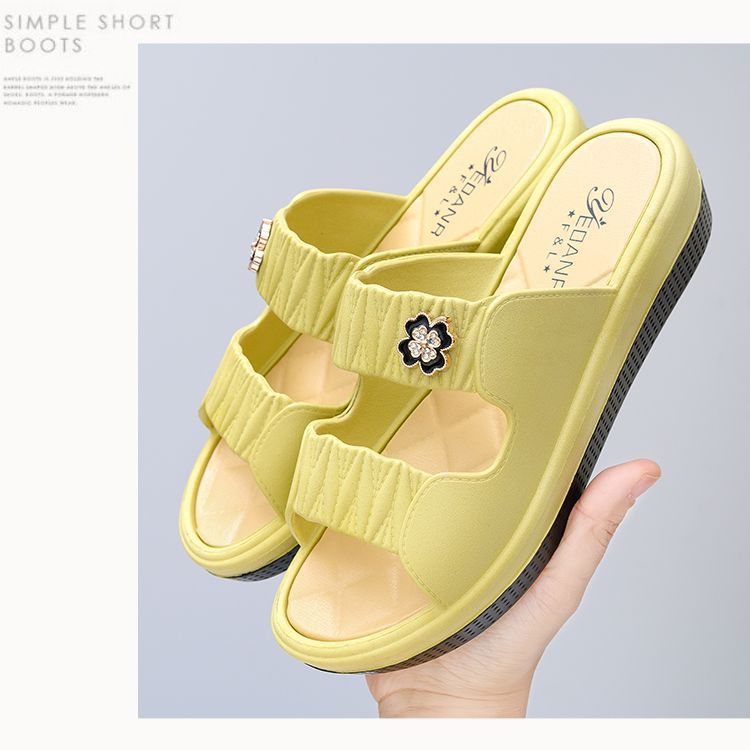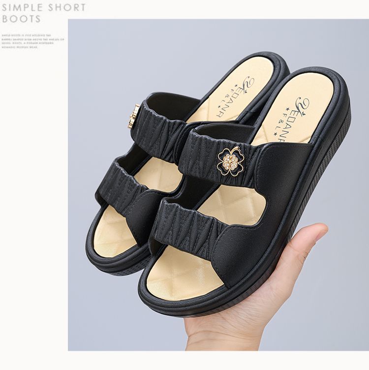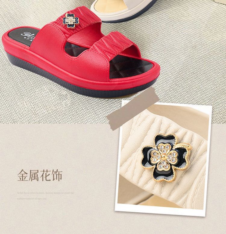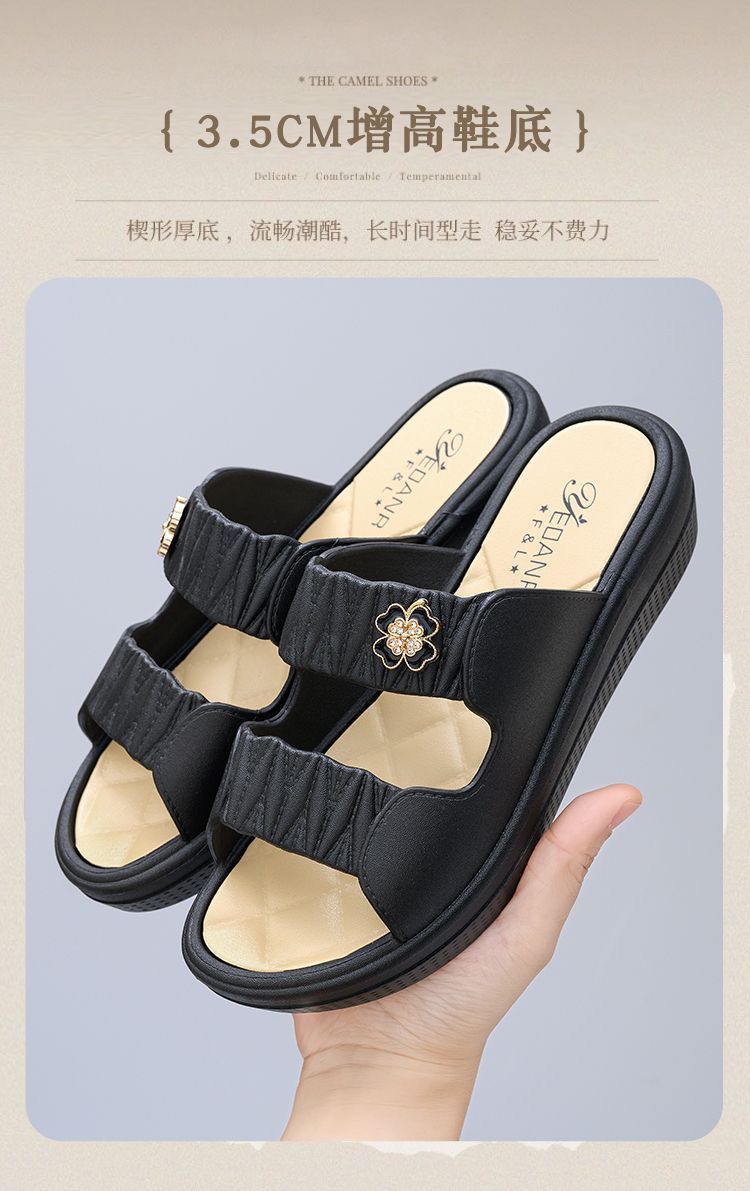 여성용 슬리퍼, 두꺼운 밑창, 키높이, 실내외 겸용, 미끄럼 방지, 냄새 방지, 한국 스타일 웨지힐, 엄마용 네잎클로버 샌들, 한국 신상품스토어 가기