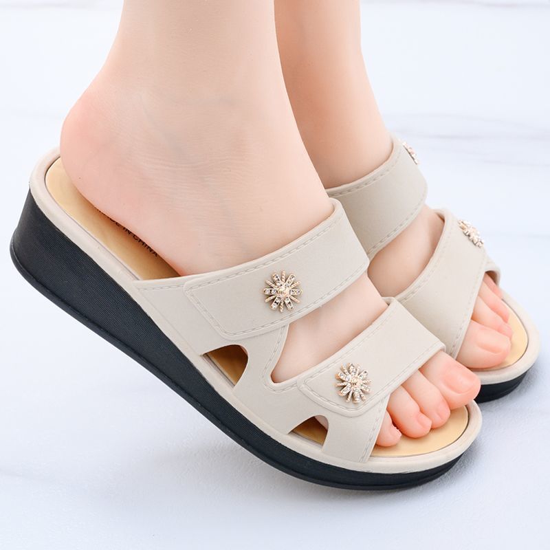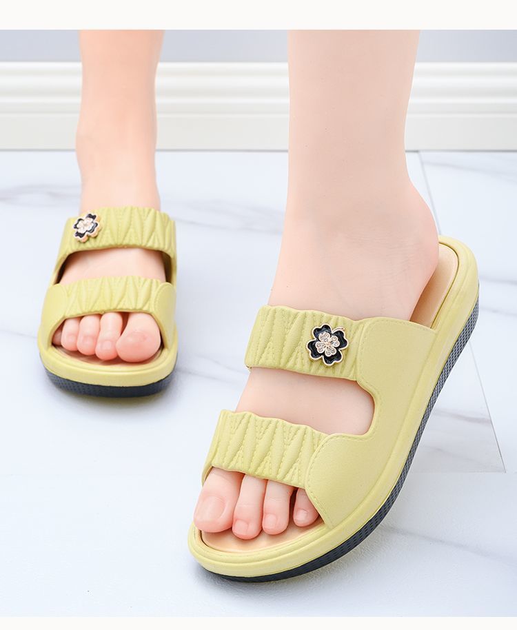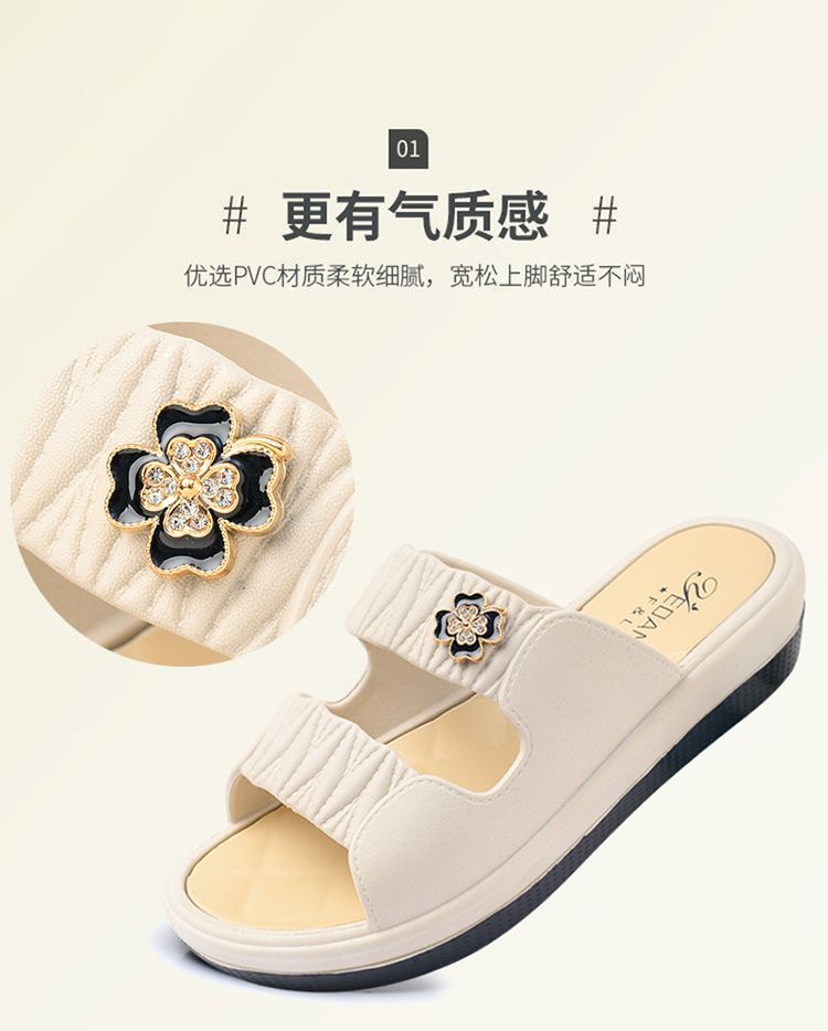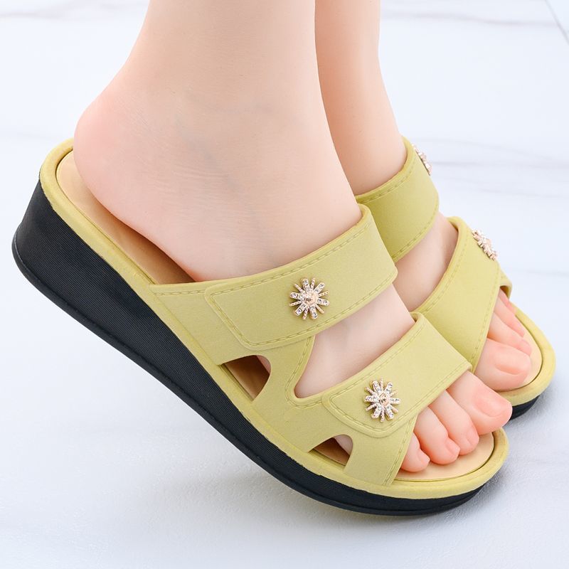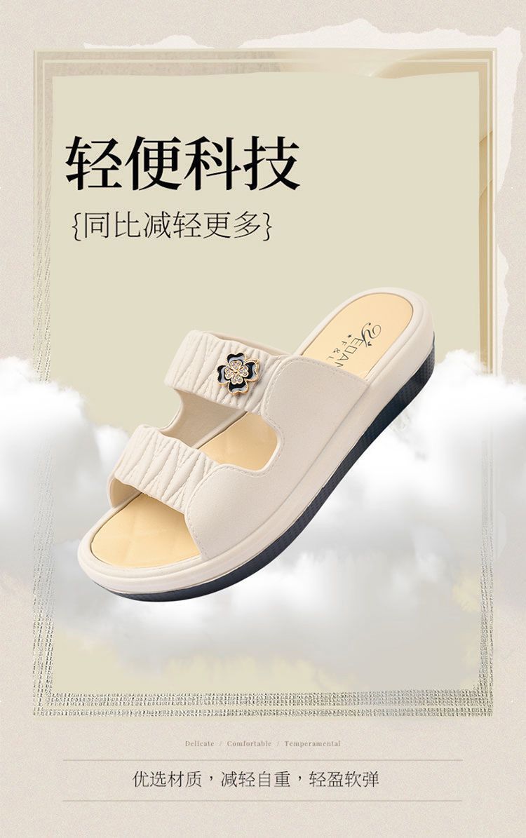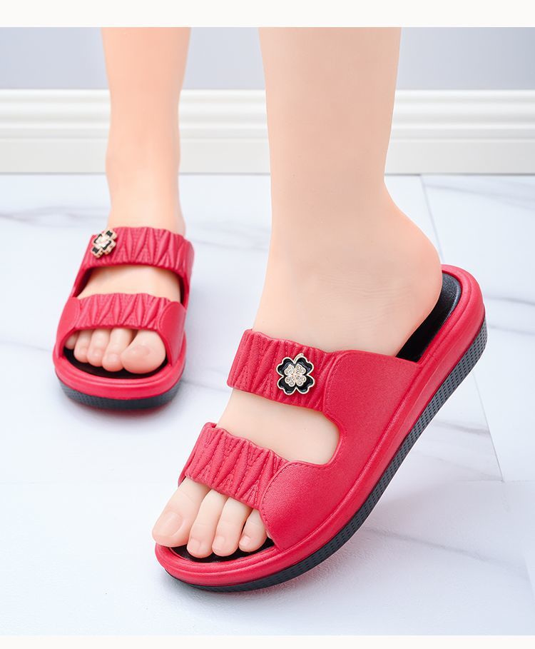 여성용 슬리퍼, 두꺼운 밑창, 키높이, 실내외 겸용, 미끄럼 방지, 냄새 방지, 한국 스타일 웨지힐, 엄마용 네잎클로버 샌들, 한국 신상품스토어 가기