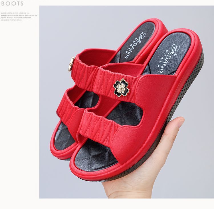 여성용 슬리퍼, 두꺼운 밑창, 키높이, 실내외 겸용, 미끄럼 방지, 냄새 방지, 한국 스타일 웨지힐, 엄마용 네잎클로버 샌들, 한국 신상품