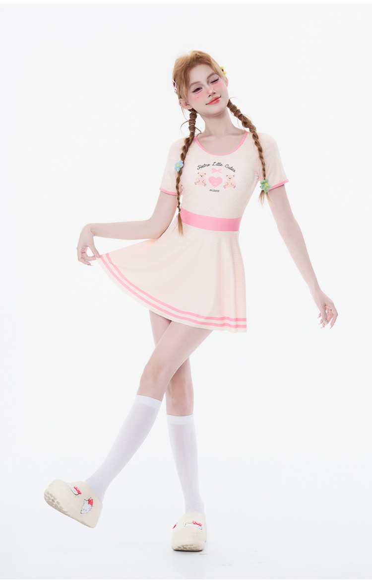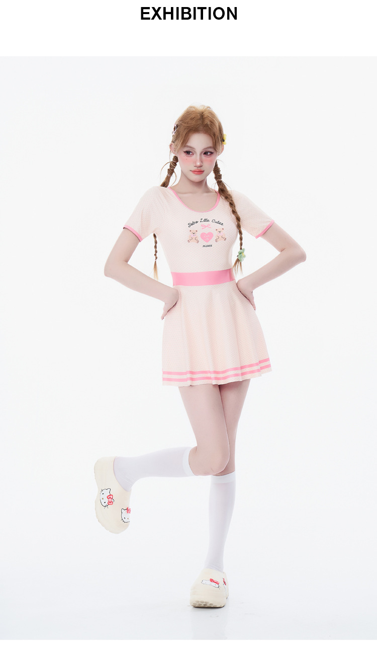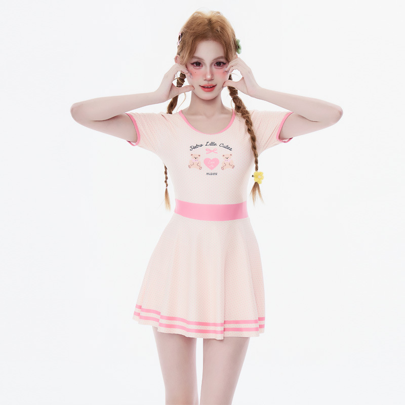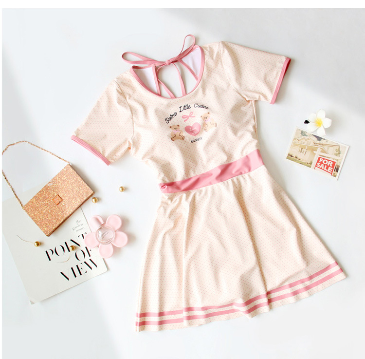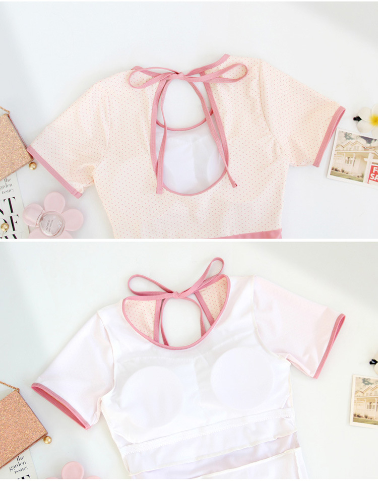 새로운 한국 인 스타일 달콤한 가리 원피스 섹시한 백리스 콘트라스트 컬러 선원 세트 여성 수영복