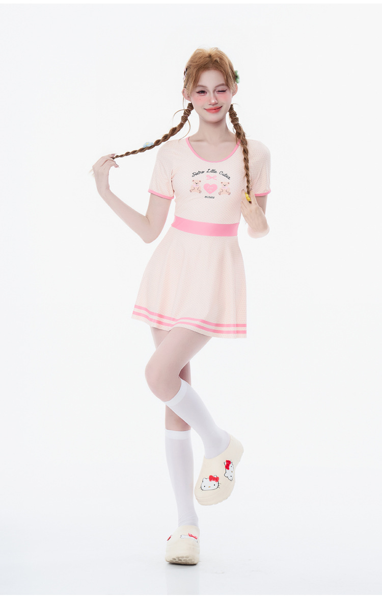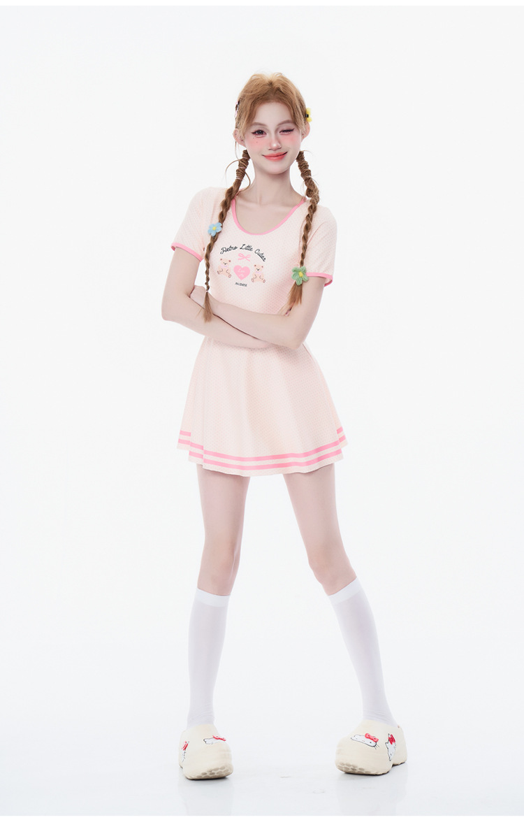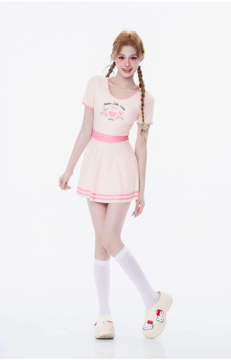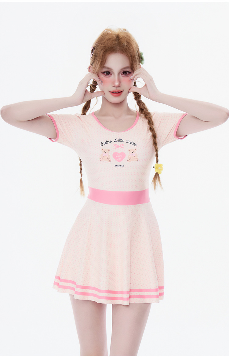 새로운 한국 인 스타일 달콤한 가리 원피스 섹시한 백리스 콘트라스트 컬러 선원 세트 여성 수영복