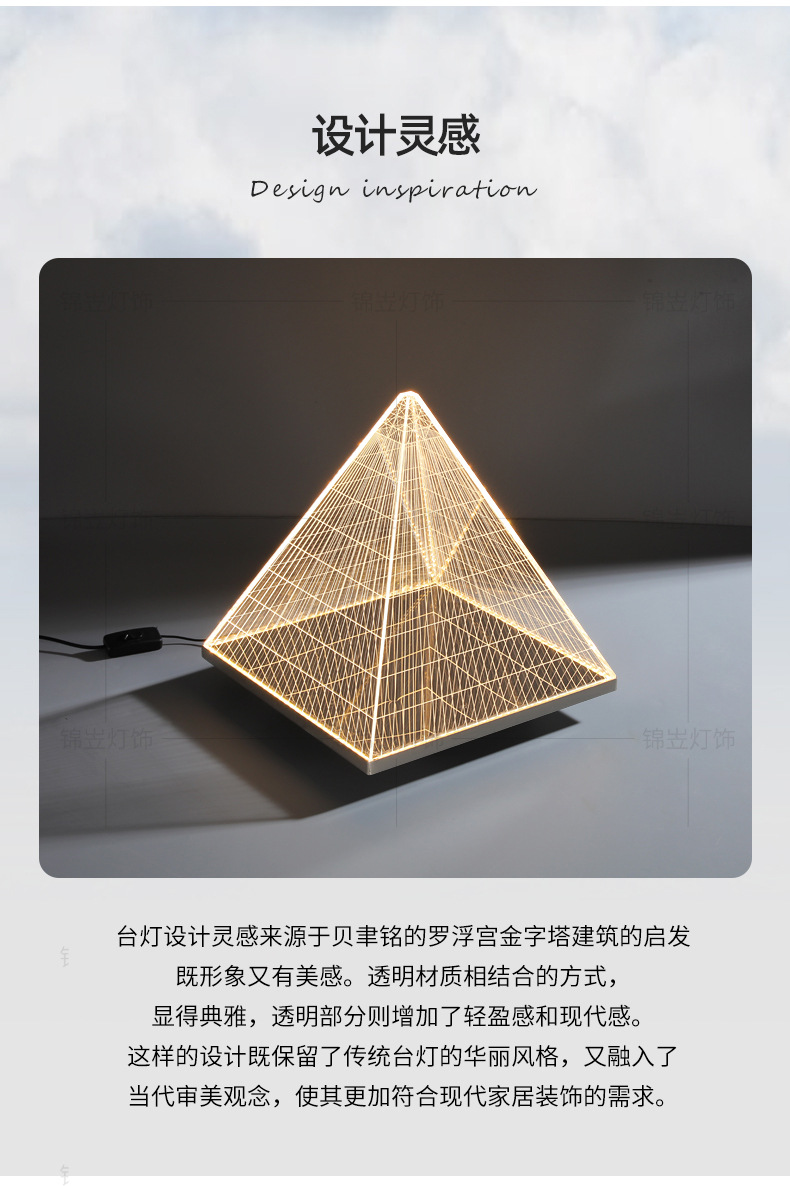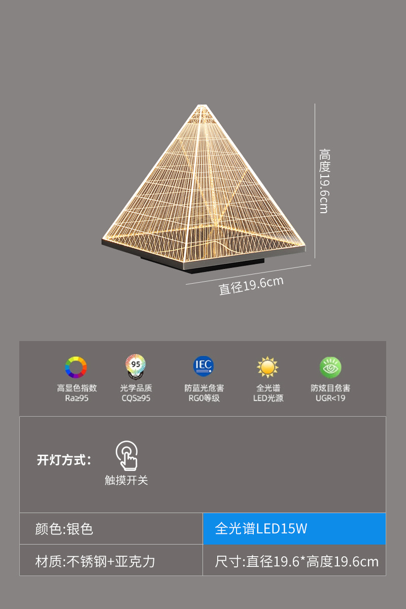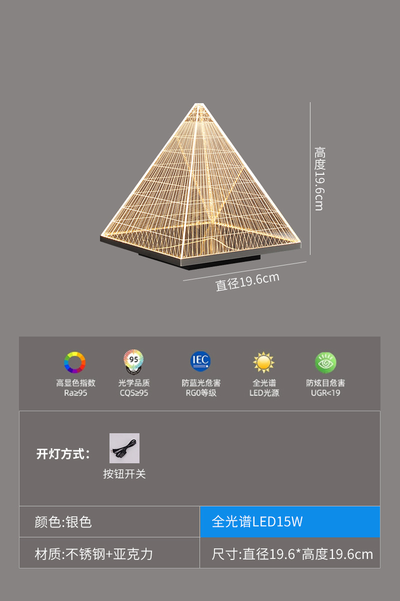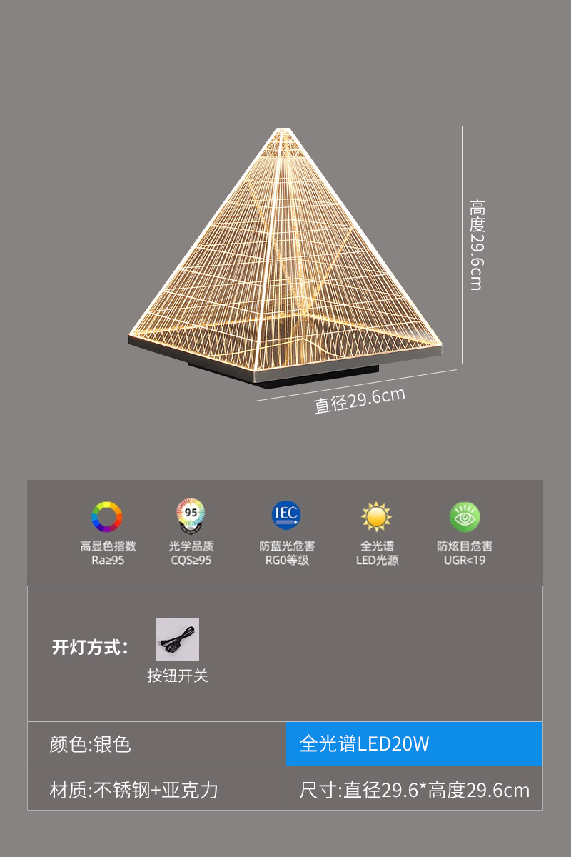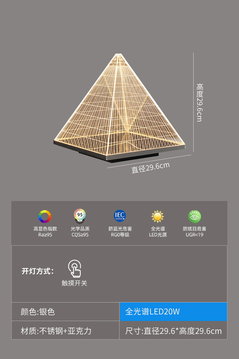 현대 간단한 피라미드 장식 테이블 램프 장식품 빛 고급 금속 밤 빛 2025 국경 폭발 아크릴 테이블 램프