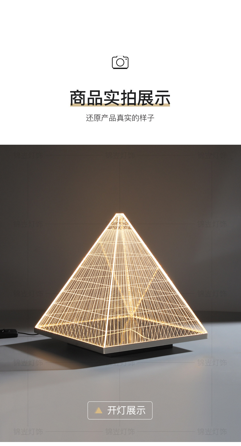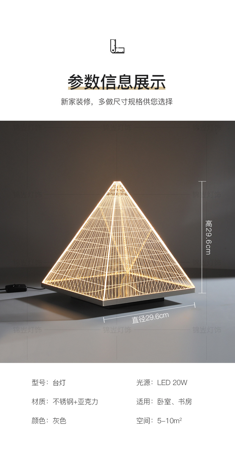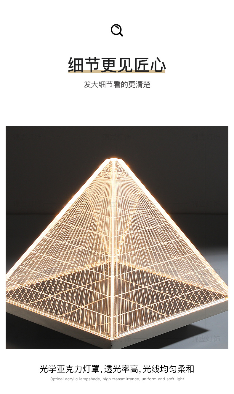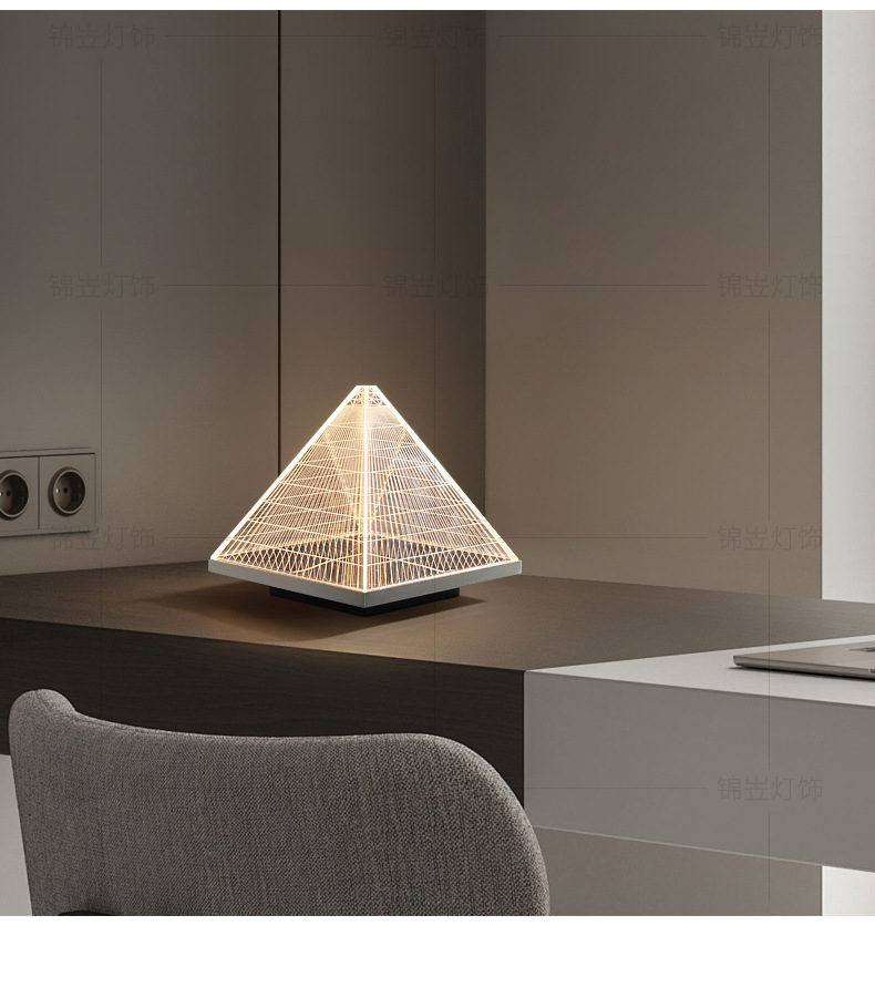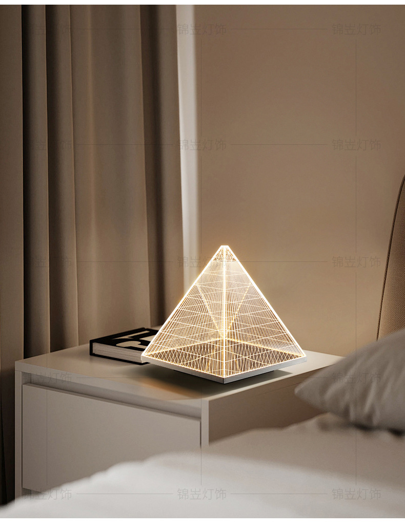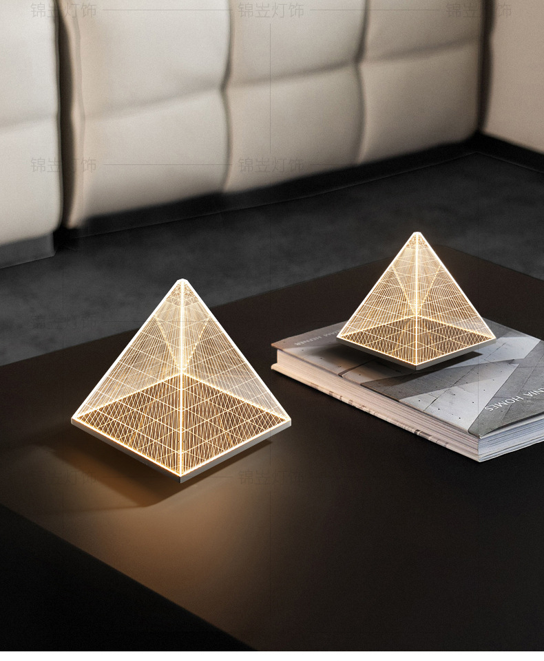 현대 간단한 피라미드 장식 테이블 램프 장식품 빛 고급 금속 밤 빛 2025 국경 폭발 아크릴 테이블 램프스토어 가기