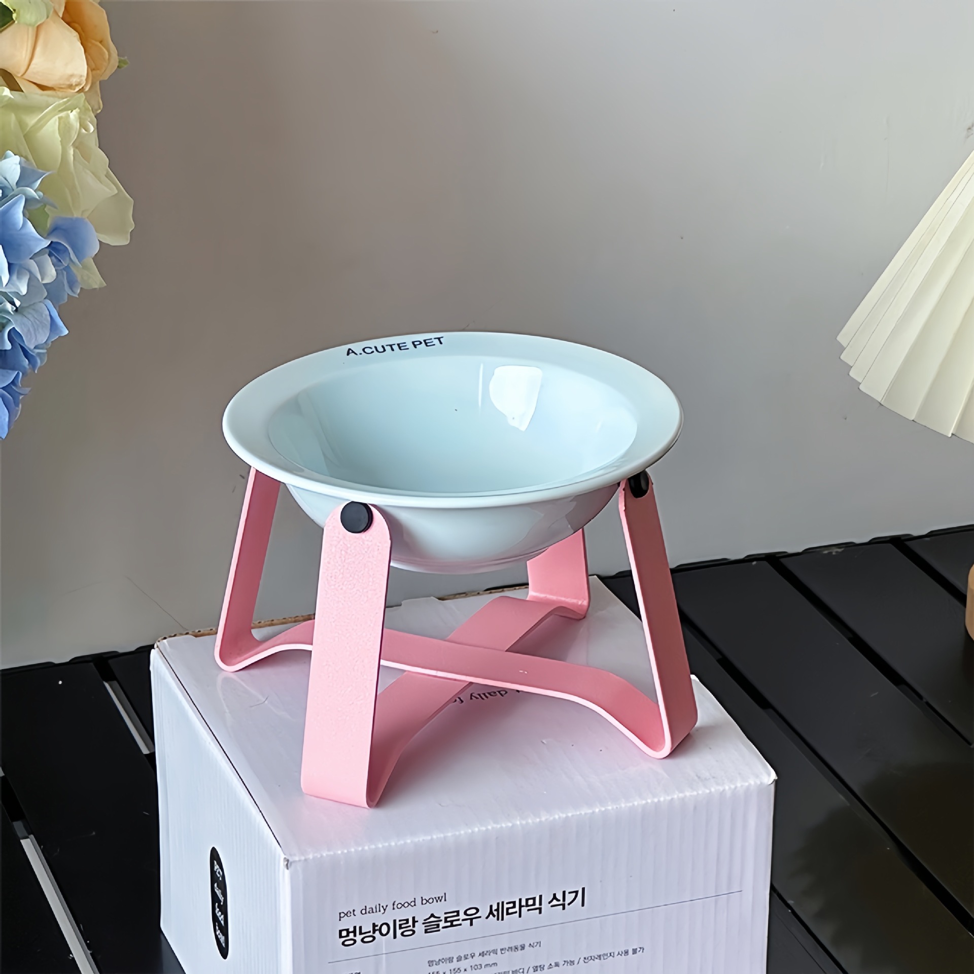 고양이 그릇 세라믹 철 랙 플라잉 접시 그릇 높은 발 보호 자궁 경부 척추 고양이 먹이 그릇 고양이 음식 분지 고양이 물 그릇 반대로 전복 고양이 분지
