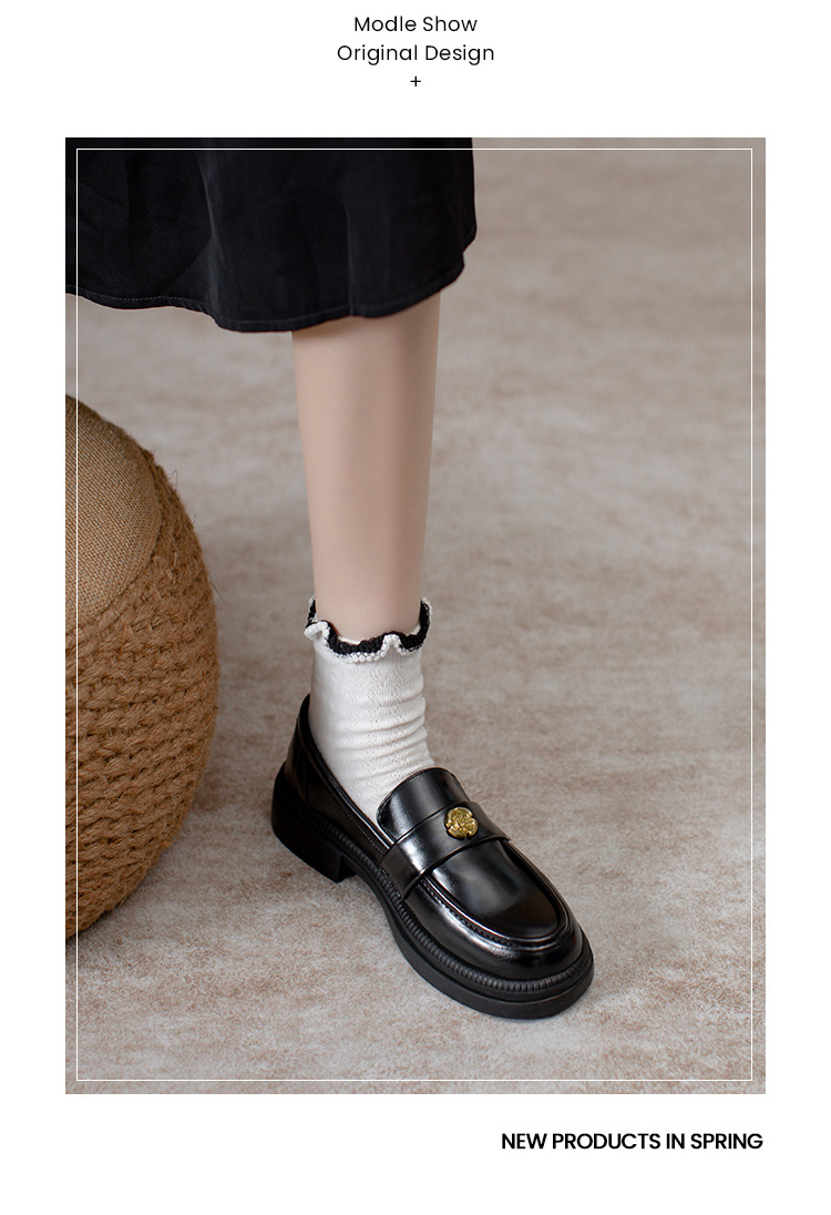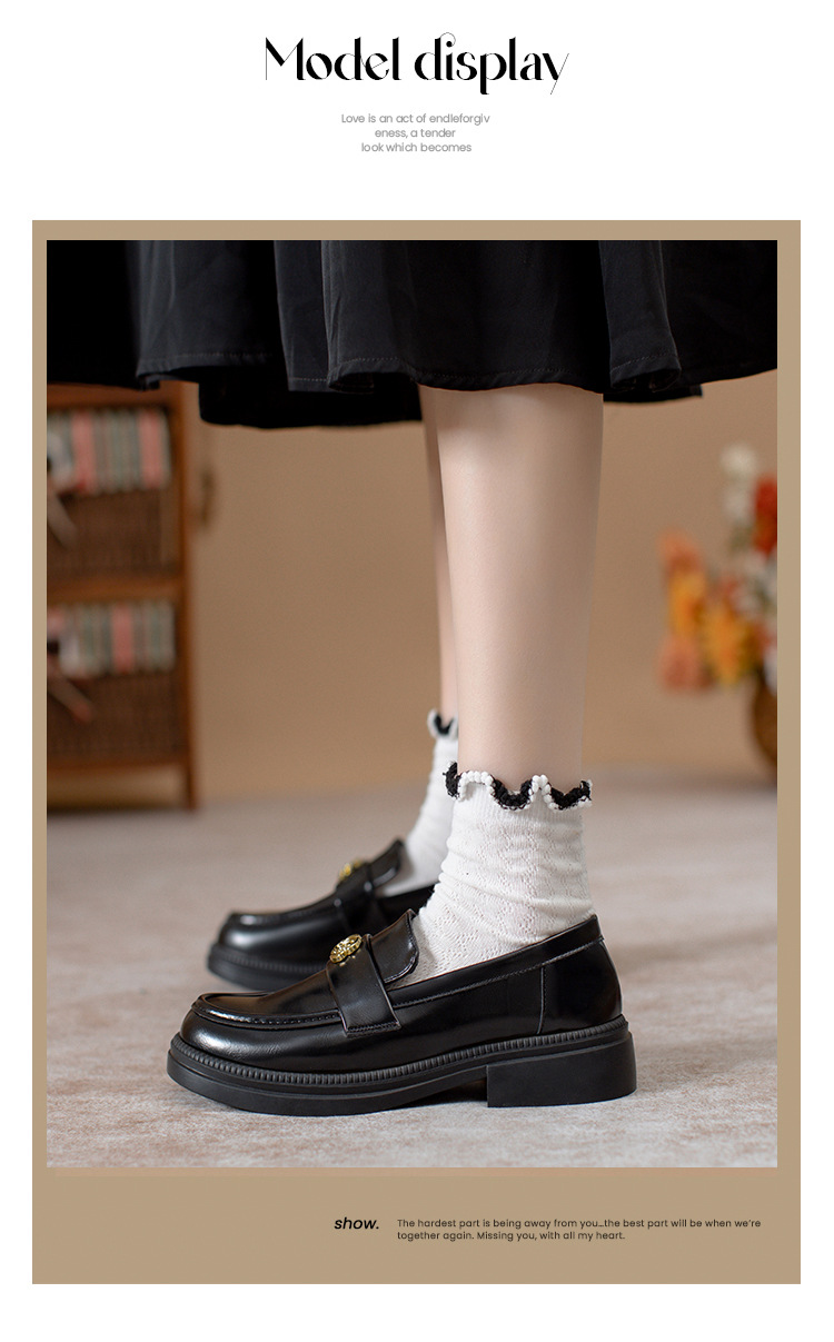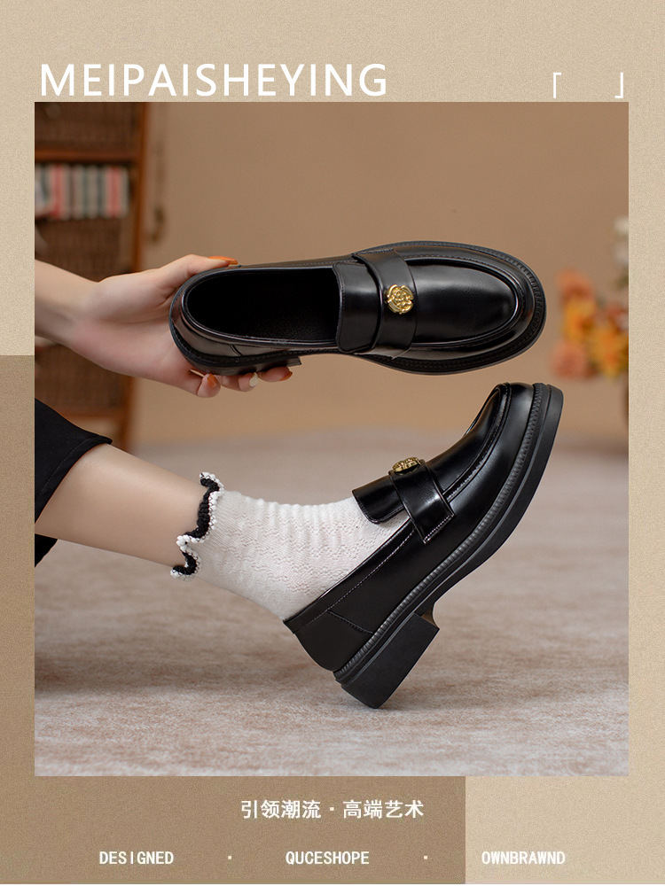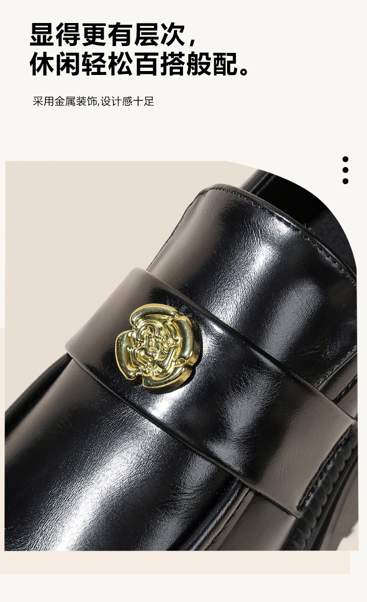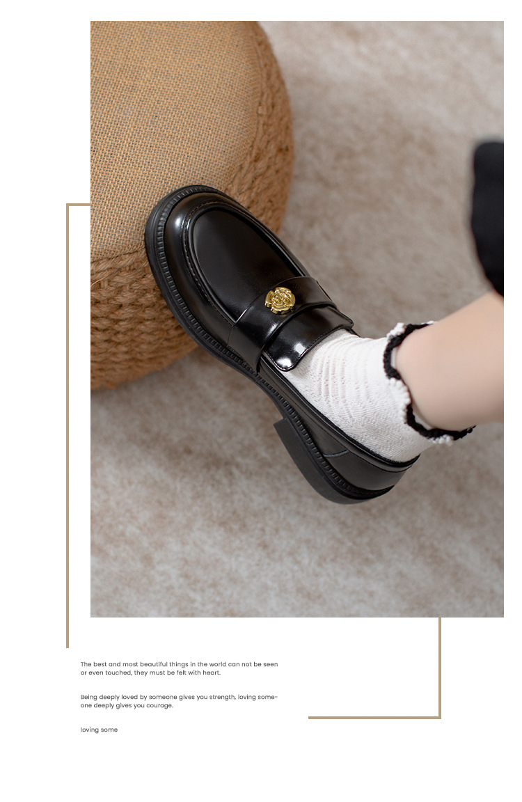 여성용 소형 골드 코인 버클 플랫폼 밑창 로퍼 여성 2024 새로운 영국 스타일 싱글 레이어 신발 블랙 올 매치 캐주얼 작은 가죽 신발스토어 가기