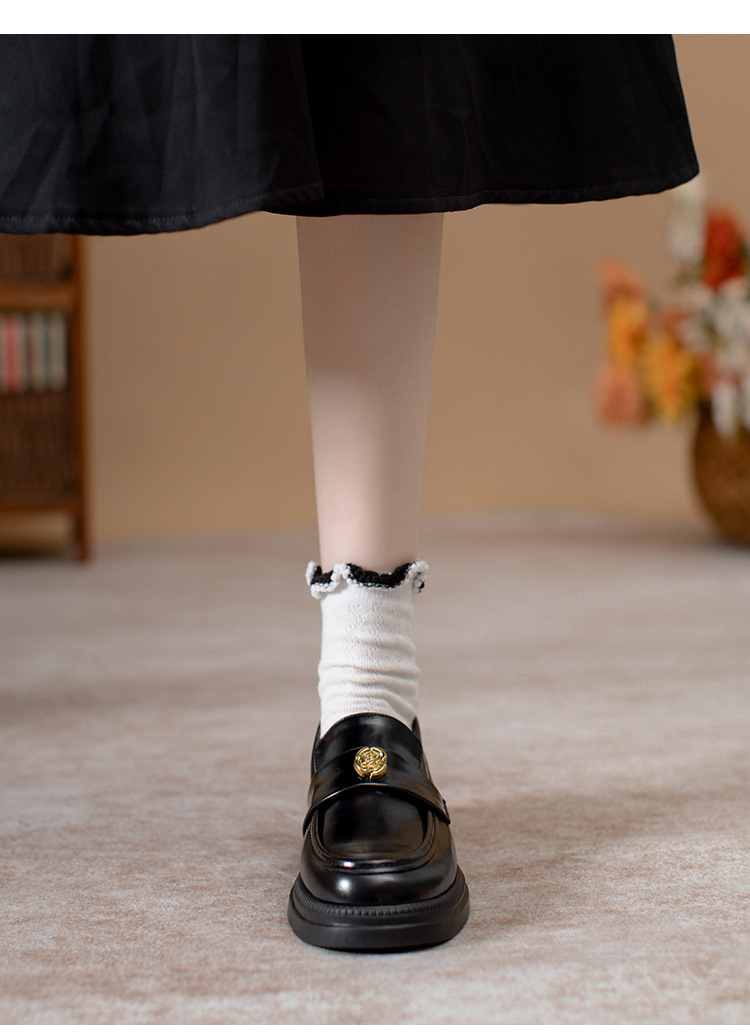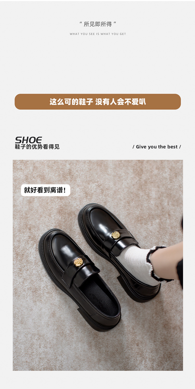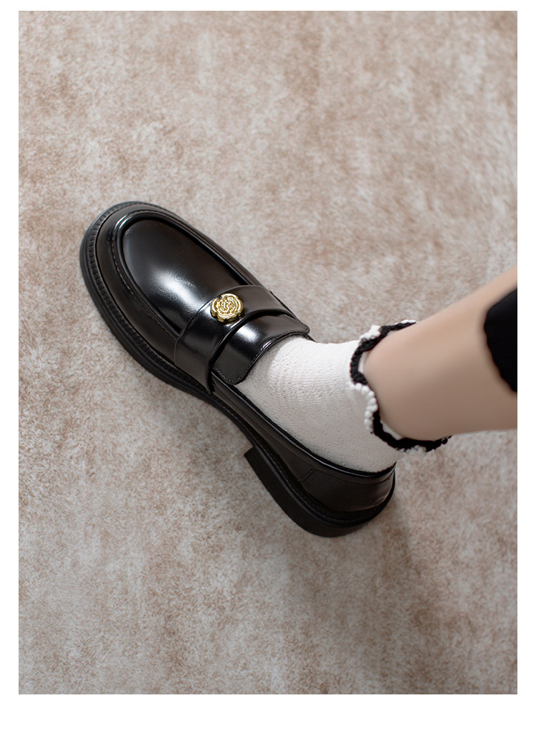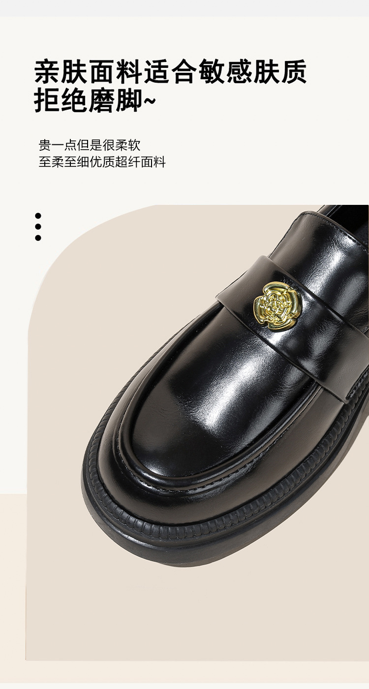 여성용 소형 골드 코인 버클 플랫폼 밑창 로퍼 여성 2024 새로운 영국 스타일 싱글 레이어 신발 블랙 올 매치 캐주얼 작은 가죽 신발스토어 가기