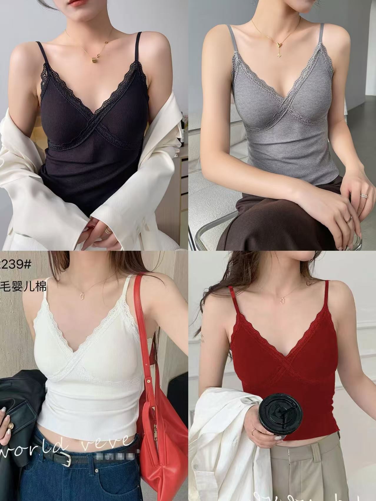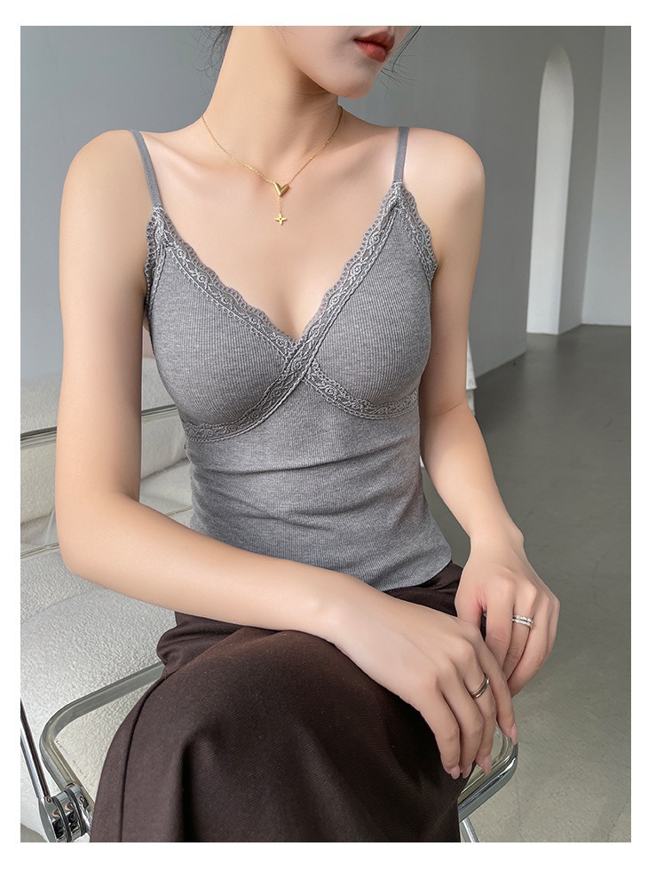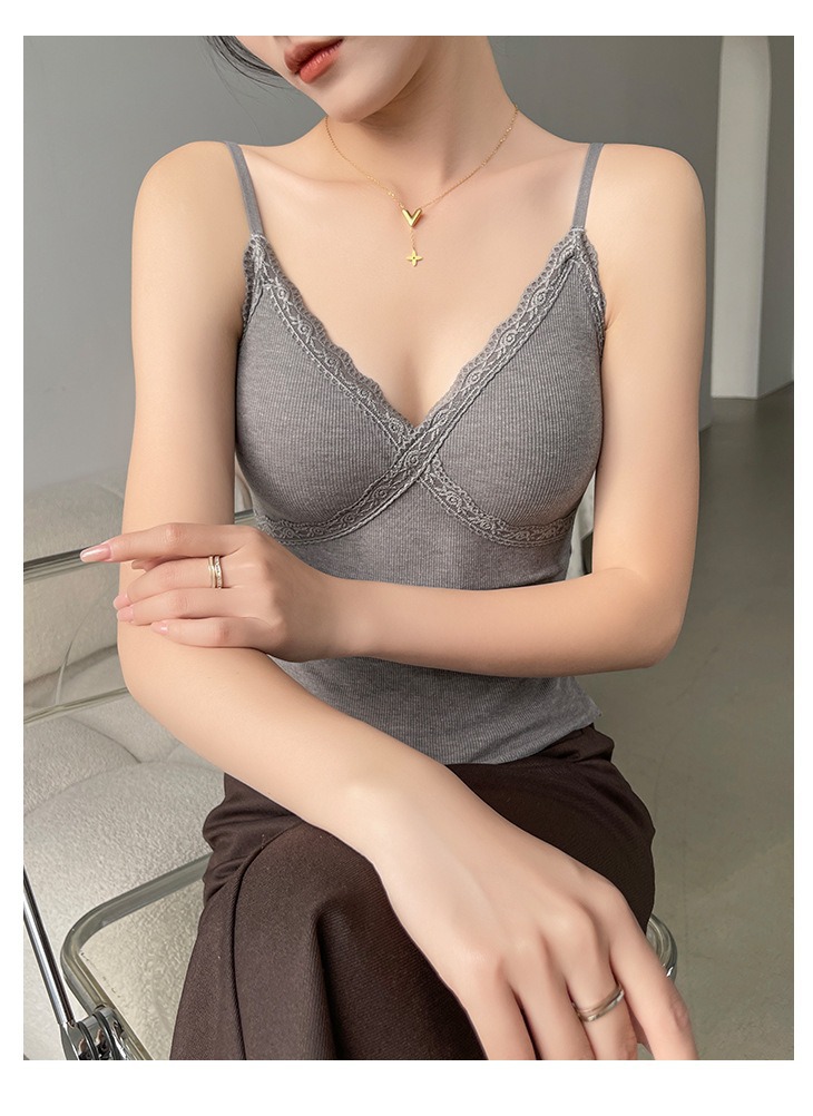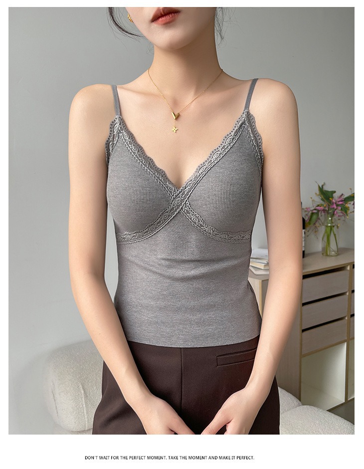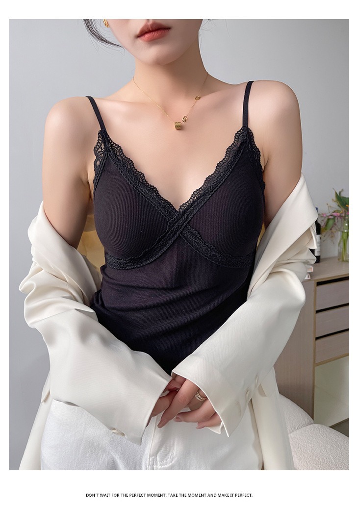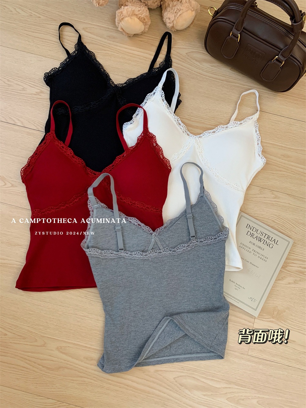 가을과 겨울 순수한 욕망 레이스 슬림 탑 가슴 패드와 함께 아름다운 뒷면 솔리드 컬러 따뜻한베이스 조끼스토어 가기
