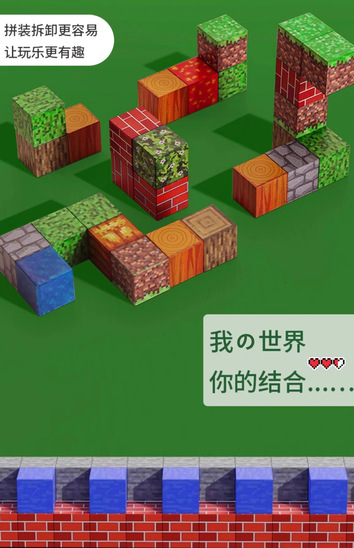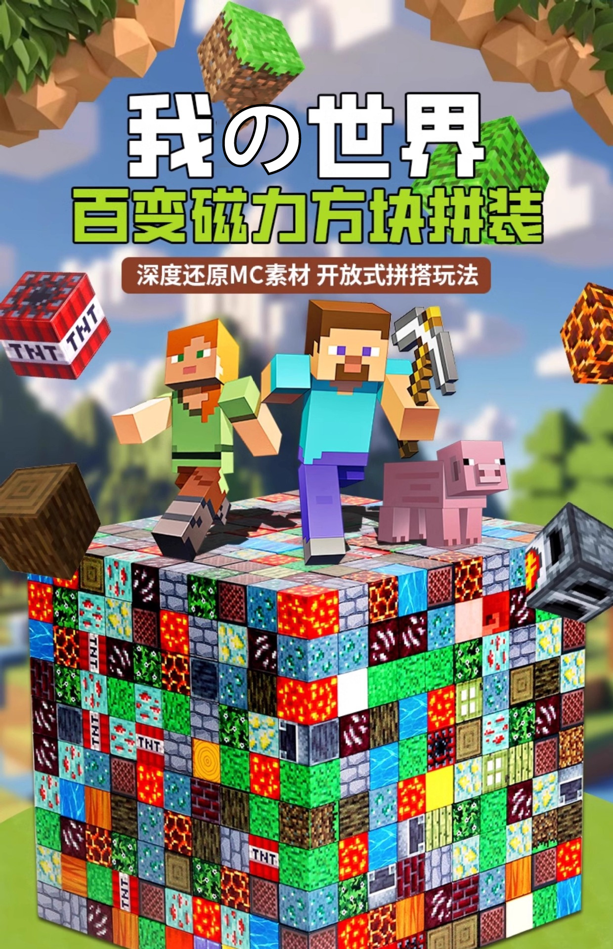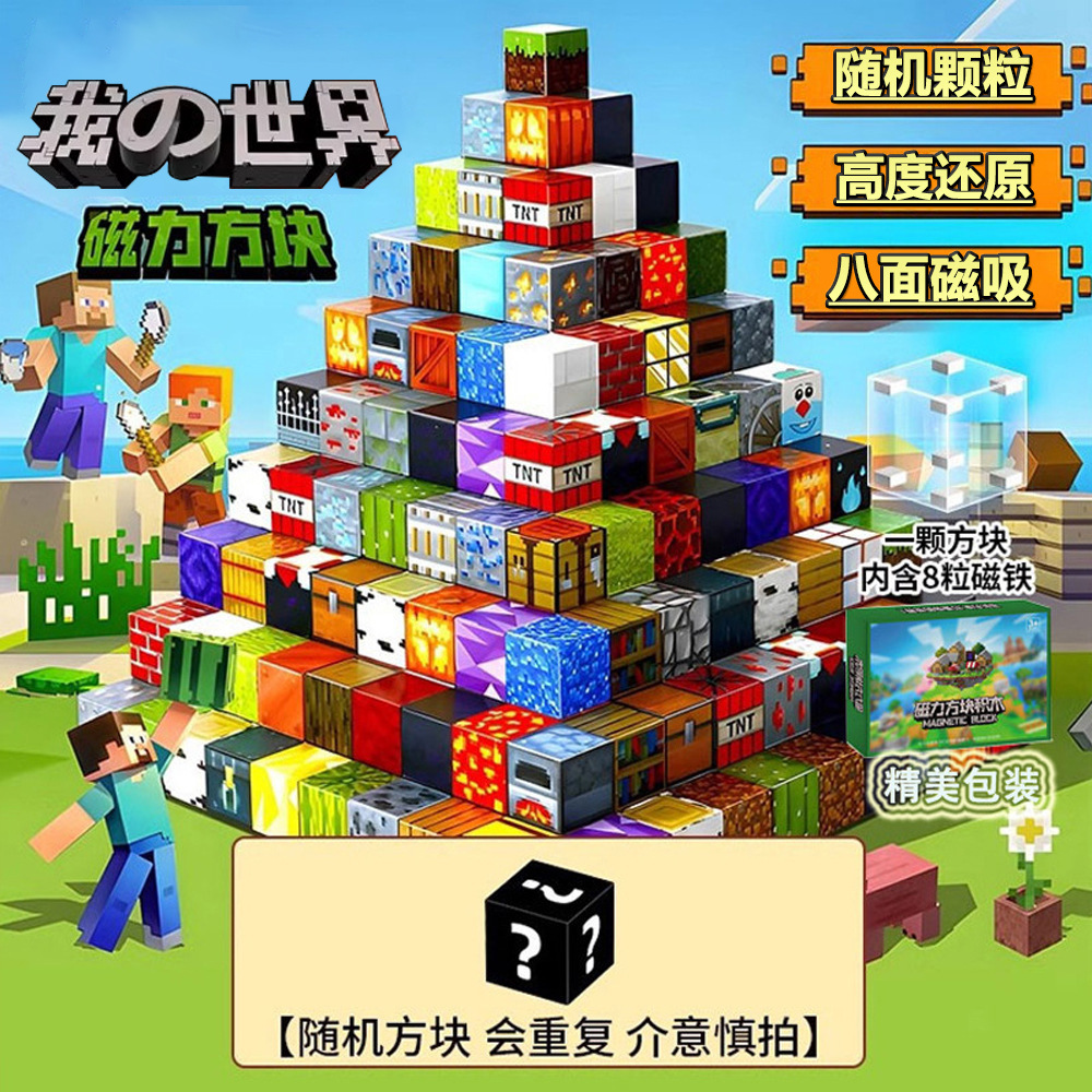 我的世界我e世界磁力块磁吸积木益智玩具大颗粒拼装磁力方块儿童玩具周边