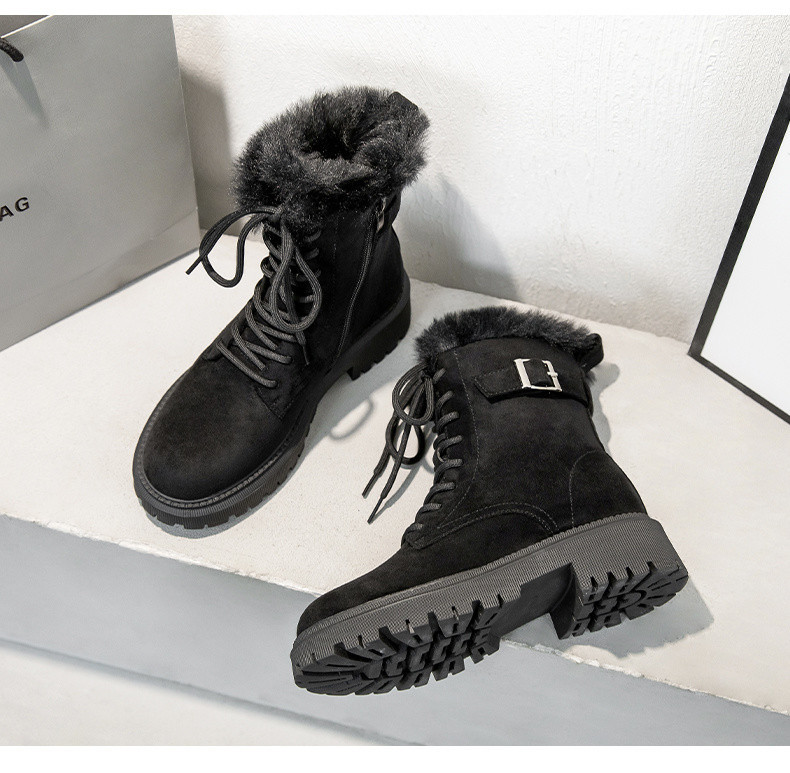 겨울 야외 두꺼운 밑창 스노우 부츠 여성의 2024 새로운 겨울 기모 두꺼운 따뜻한 짧은 부츠 북동쪽 미끄럼 방지 코튼 신발
