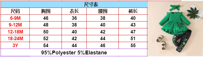 2025 유아 소녀 성 패트릭의 날 녹색 긴 소매 원피스 프린트 바지 헤어 스트랩 클로버 세트