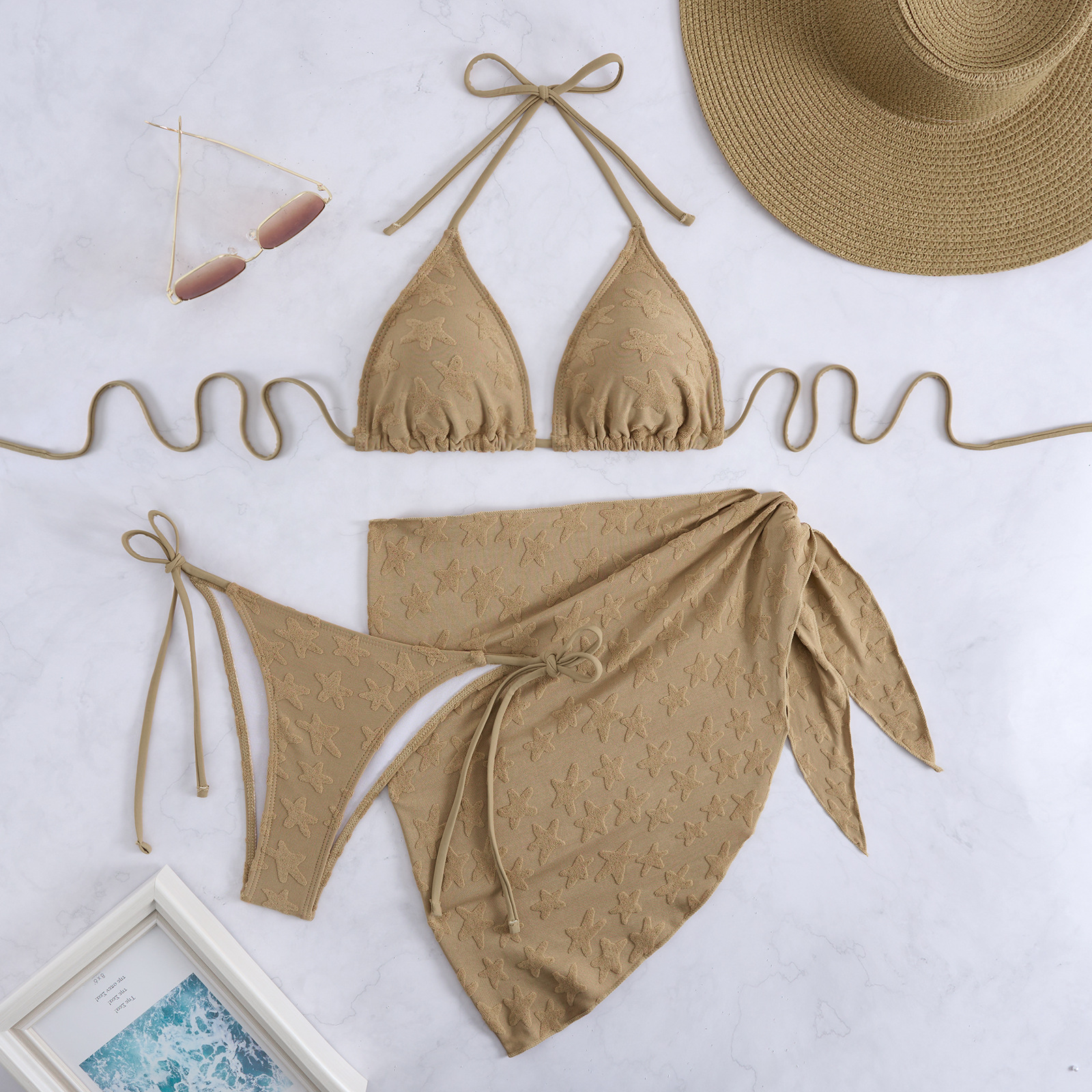 2025 새로운 유럽과 미국의 분할 수영복 3 피스 세트 동백 패턴 타월 크로스 보더 비키니 비키니