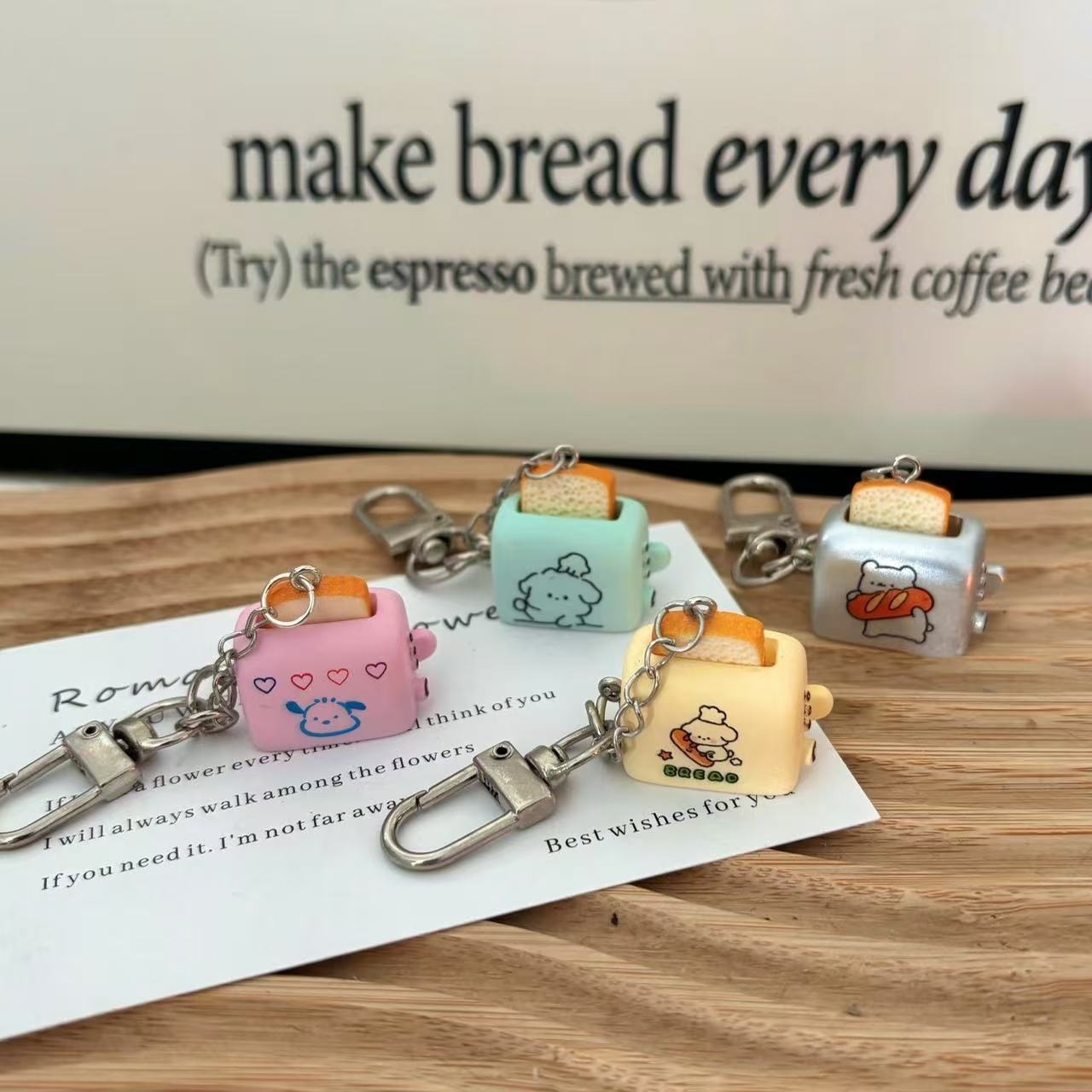 창조적 인 토스터 키 체인 미니 만화 작은 펜던트 새로운 토스트 백 귀여운 작은 장식 도매스토어 가기
