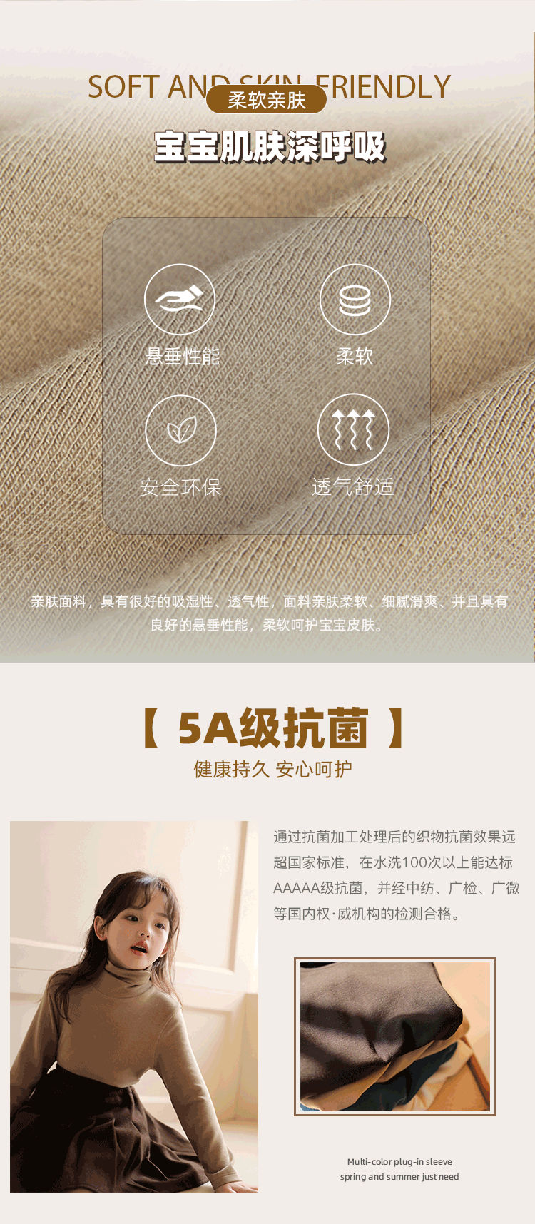 2024秋冬儿童无骨薄绒中领打底衫男女童纯色上衣宝宝弹力半高领20.5RMB立即购买>