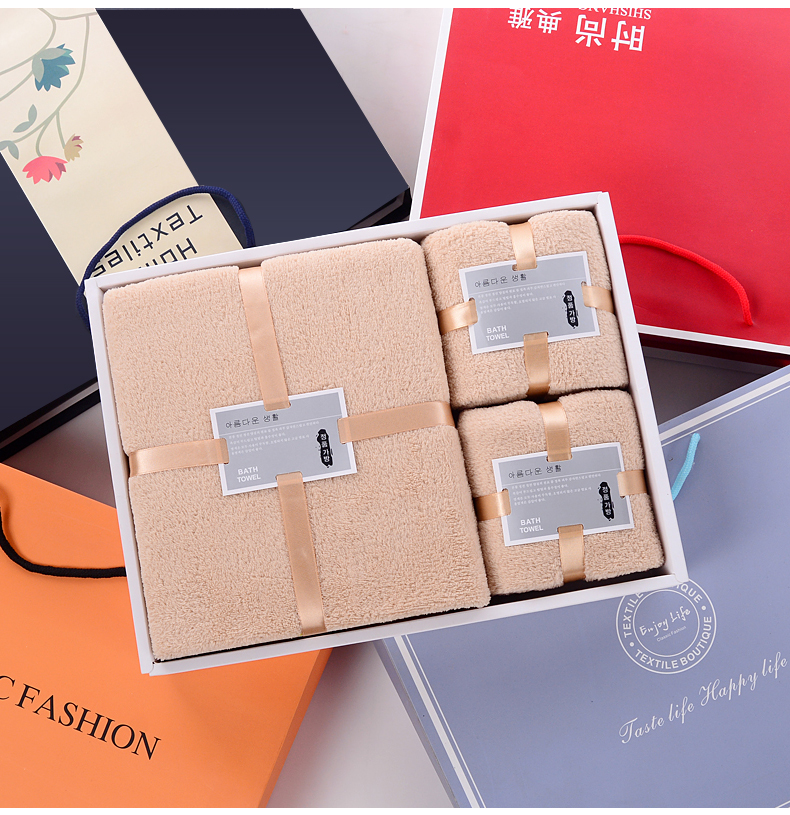산호 양털 목욕 수건 수건 세 조각 선물 상자 연례 회의 선물 비즈니스 회사 선물 수건 제조 업체 로고스토어 가기