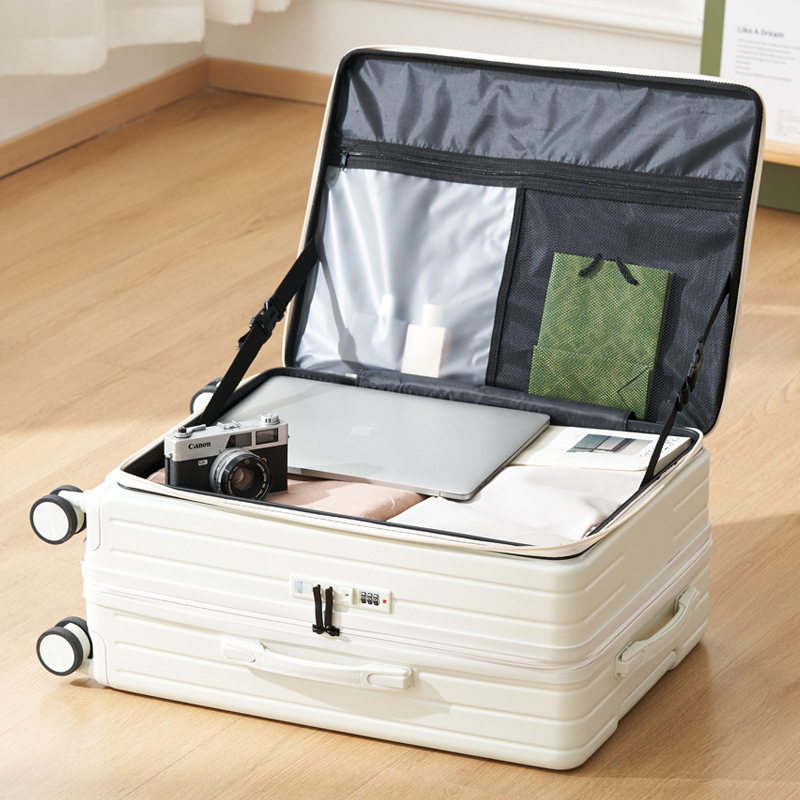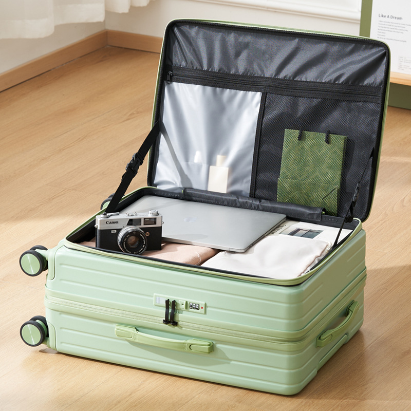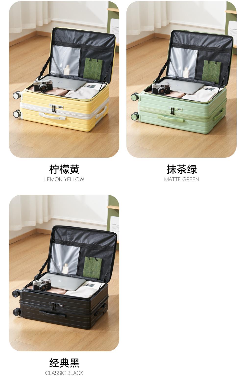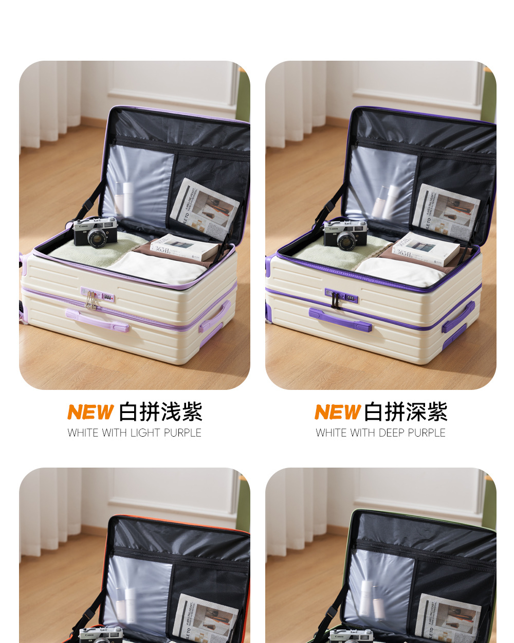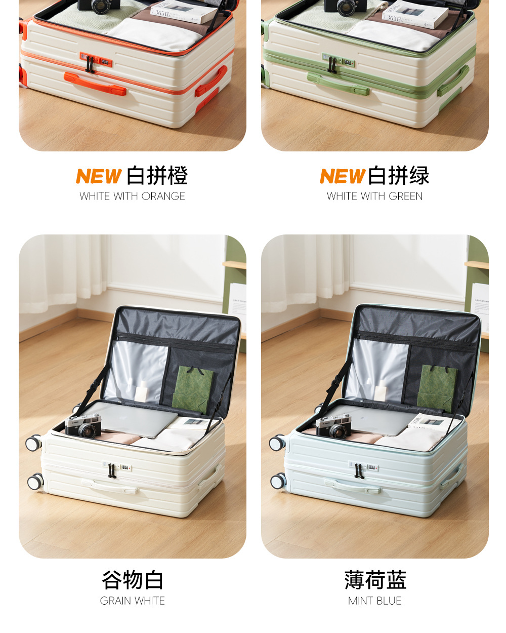 전면 개방 수하물 깊은 창고 새로운 다기능 트롤리 케이스 여성 20 인치 가방 탑승 유니버설 휠 수하물 케이스 남성