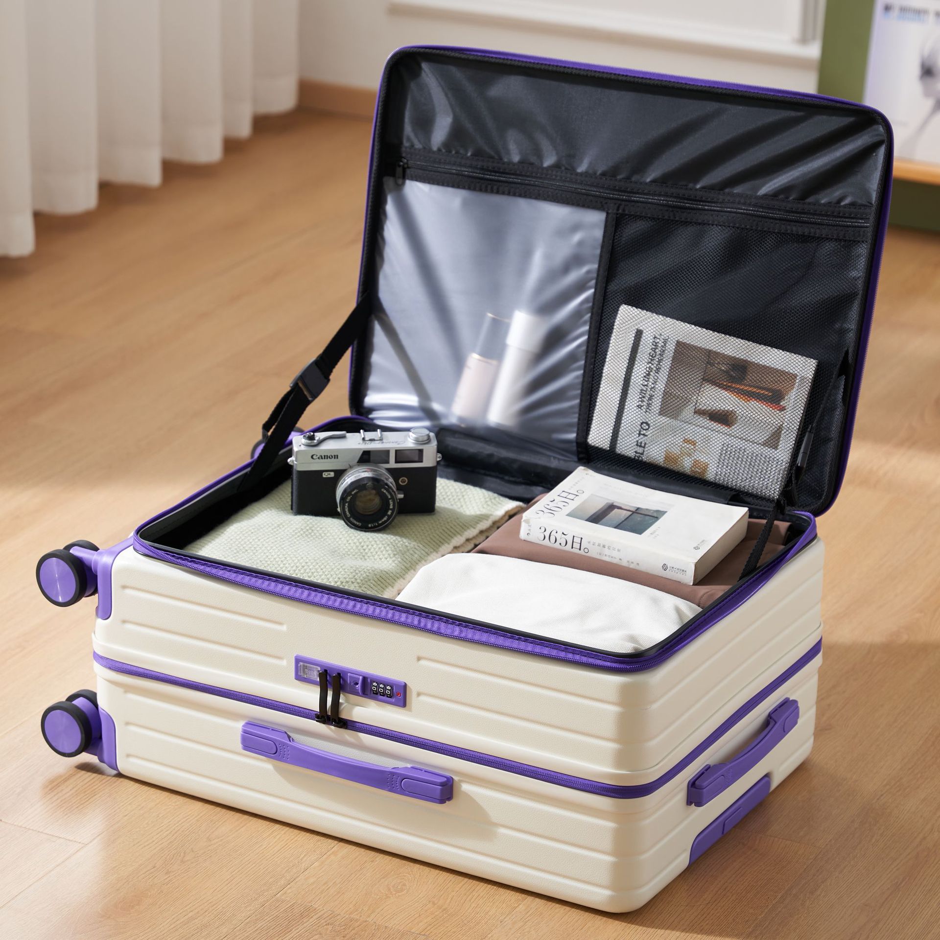 • [새로운 스타일의 흰색과 진한 보라색] (전면 개구부 + USB 충전 + 컵 홀더)