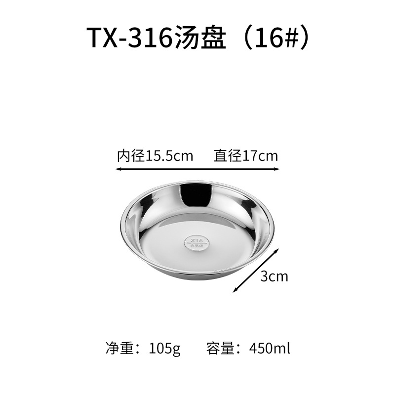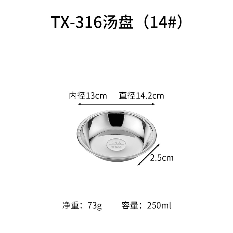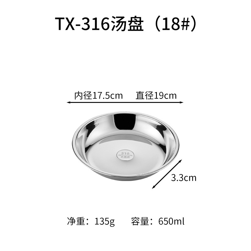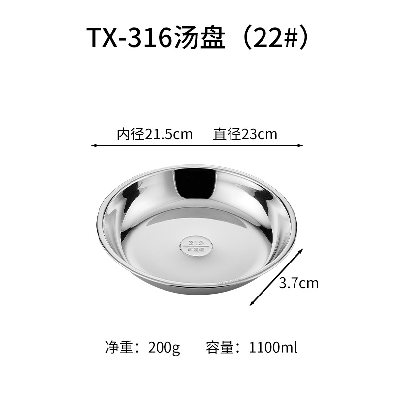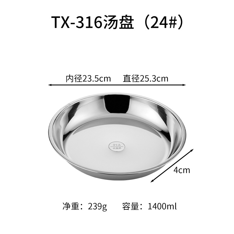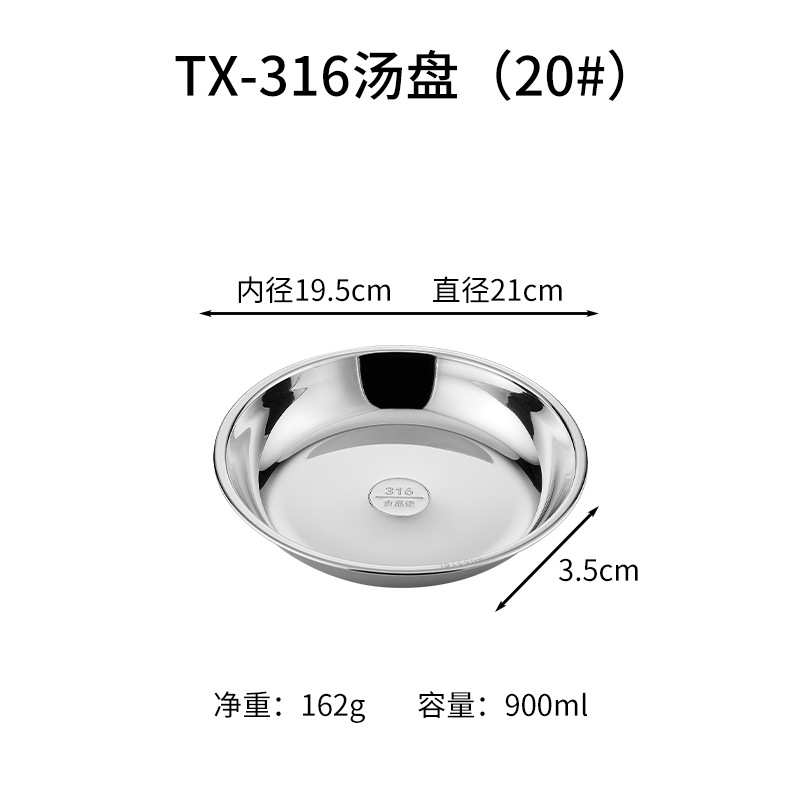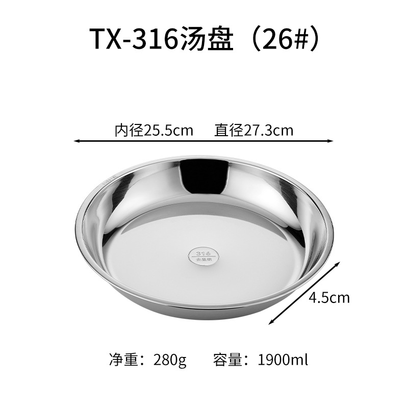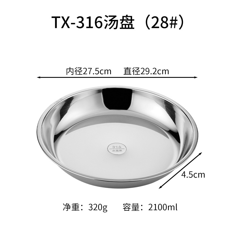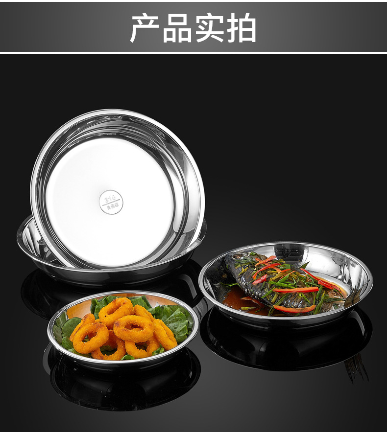 316 스테인레스 스틸 디스크 두꺼운 플레이트 디너 플레이트 접시 스테인레스 스틸 바베큐 플레이트 가정용 접시 과일 플레이트 트레이스토어 가기