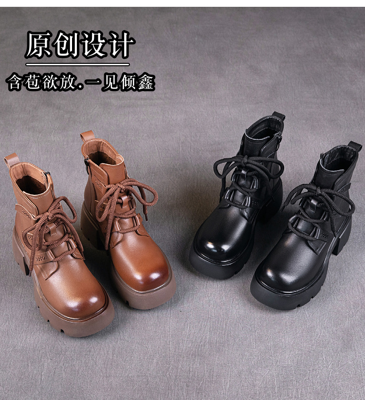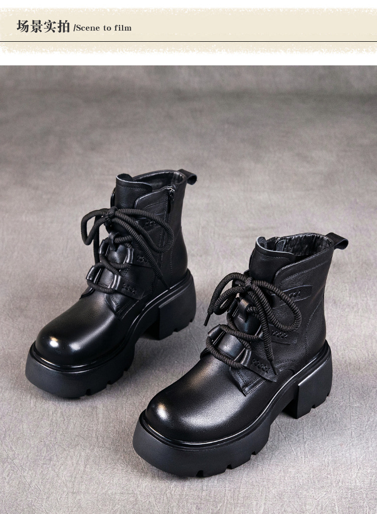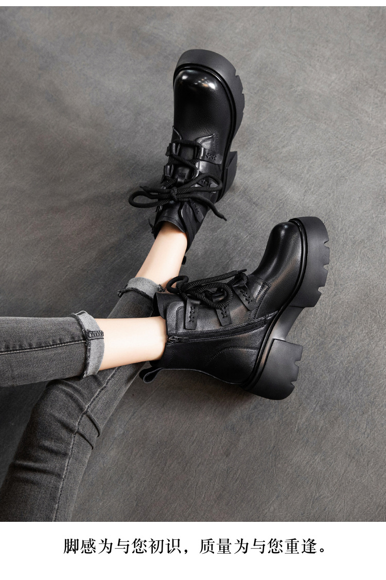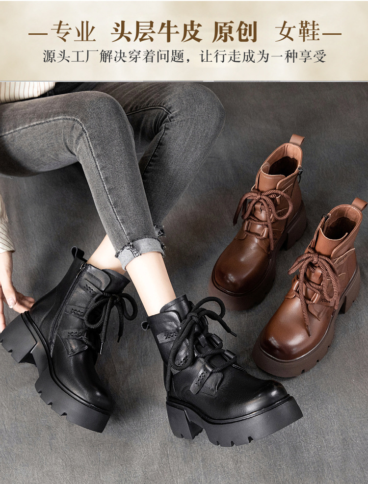 탑 레이어 소 가죽 마틴 부츠 여성의 가을과 겨울 2024 새로운 레이스 업 가죽 플랫폼 가죽 부츠 여성 짧은 부츠스토어 가기