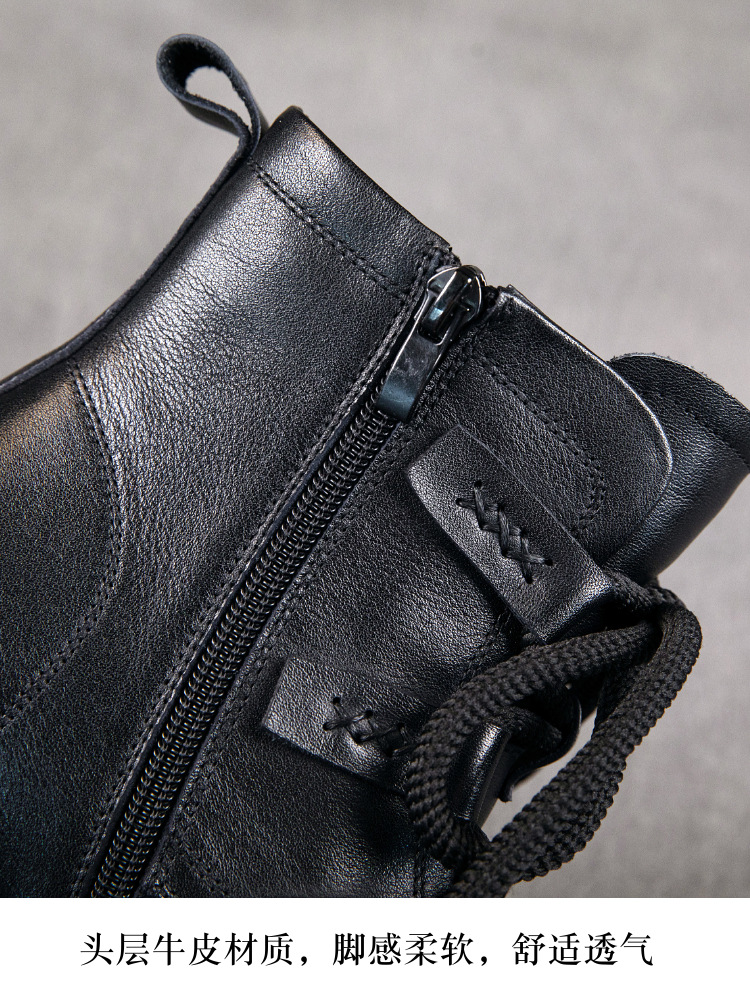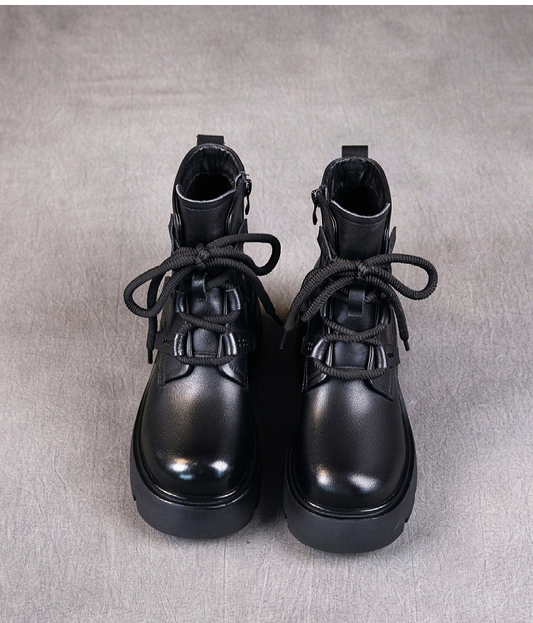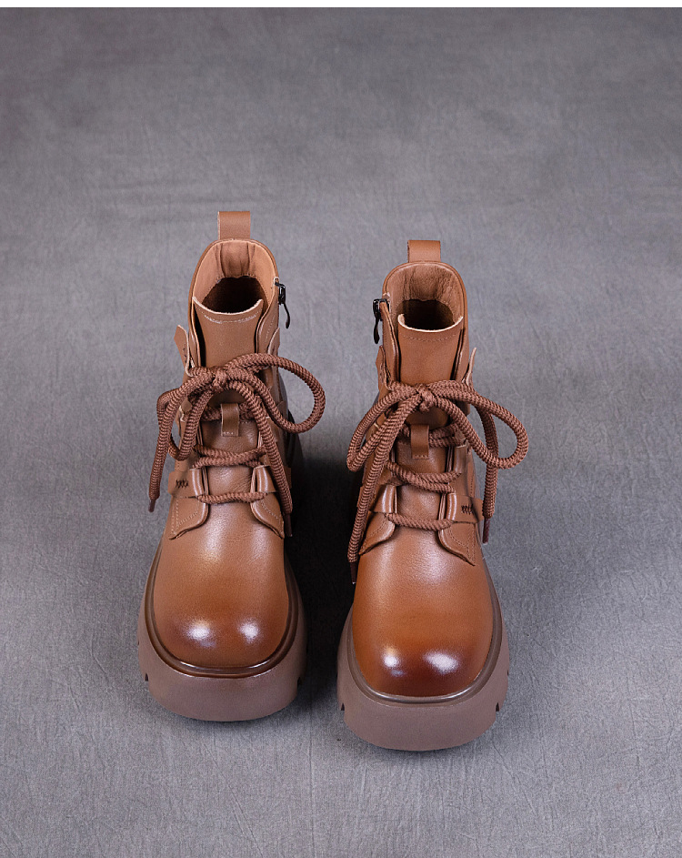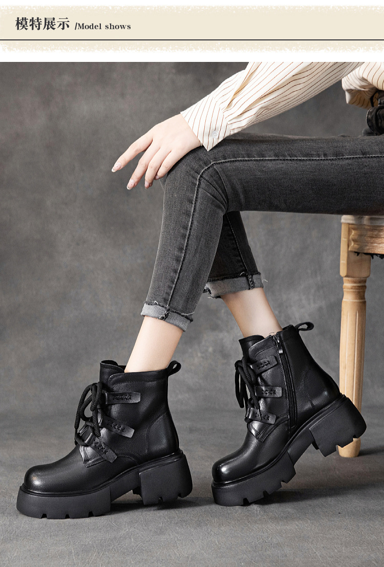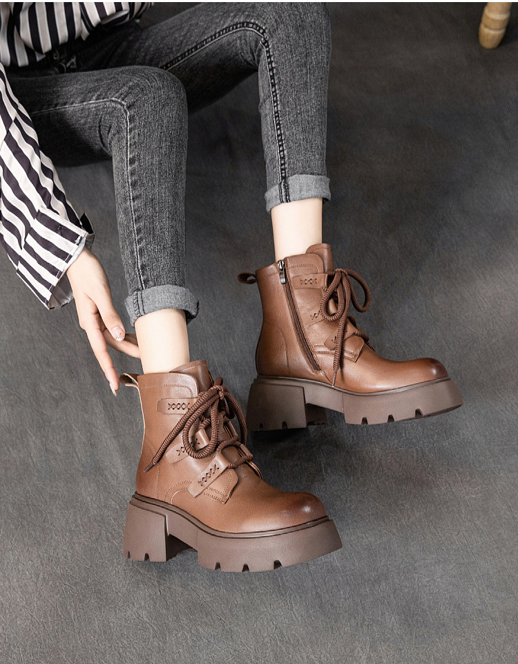 탑 레이어 소 가죽 마틴 부츠 여성의 가을과 겨울 2024 새로운 레이스 업 가죽 플랫폼 가죽 부츠 여성 짧은 부츠스토어 가기