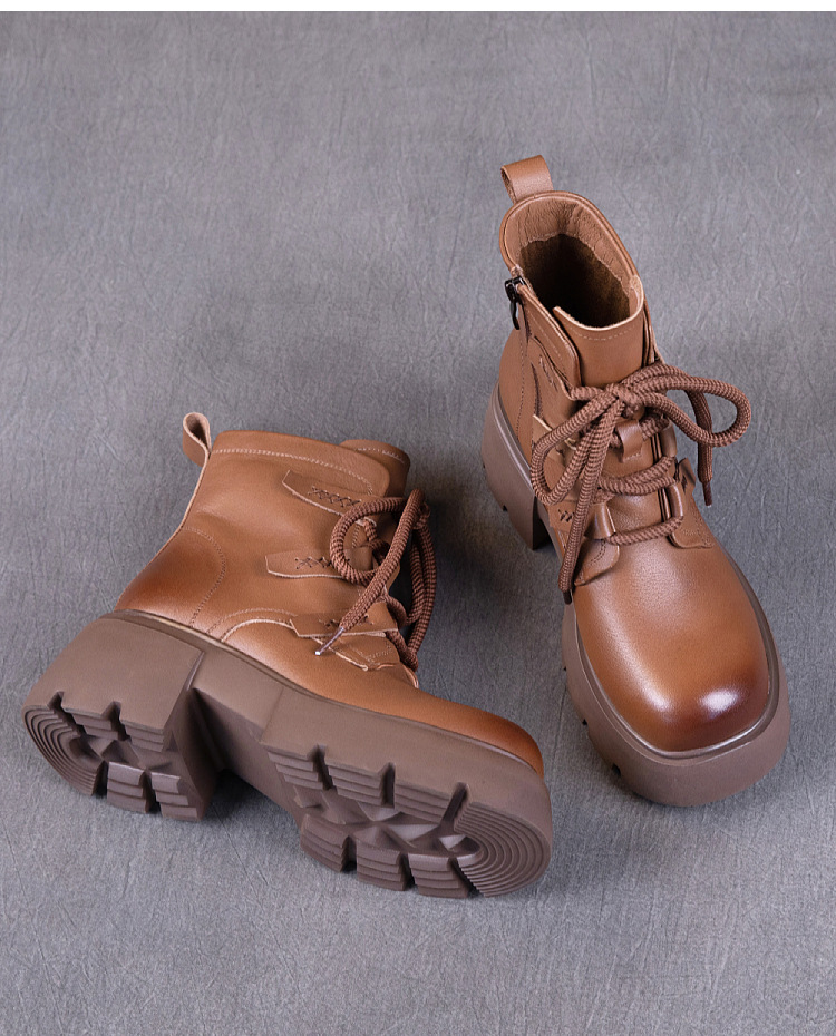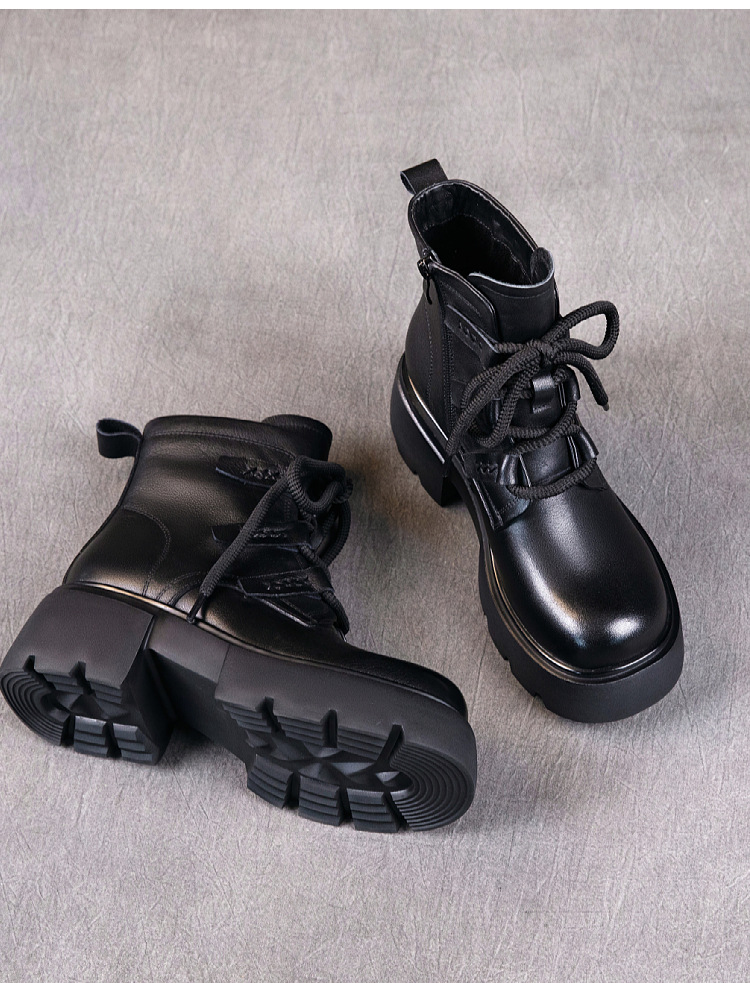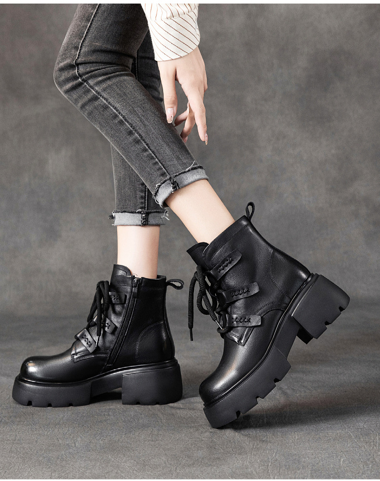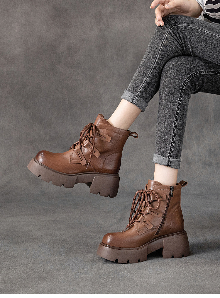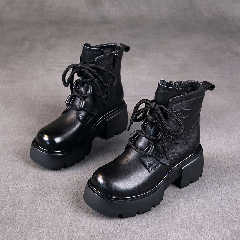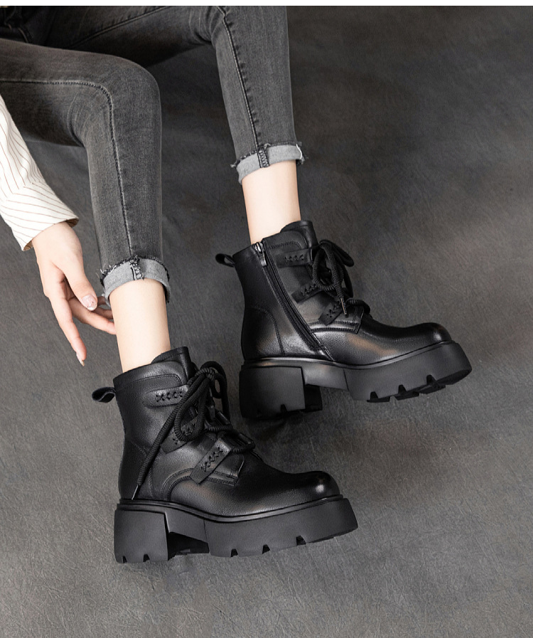 탑 레이어 소 가죽 마틴 부츠 여성의 가을과 겨울 2024 새로운 레이스 업 가죽 플랫폼 가죽 부츠 여성 짧은 부츠