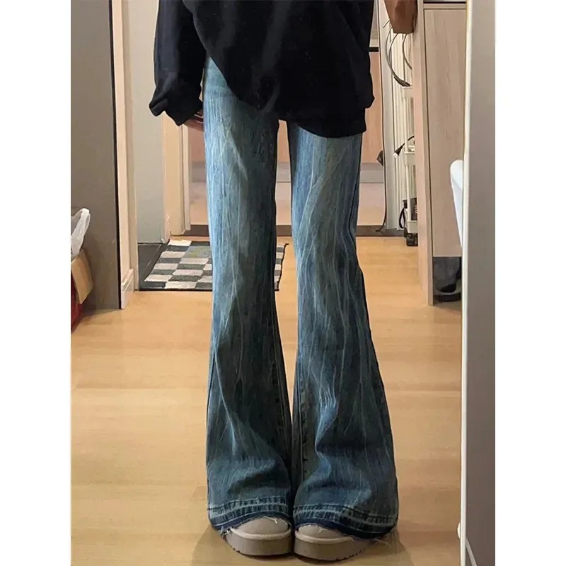 아메리칸 스타일 레트로 마이크로 플레어 청바지 여성의 가을과 겨울 새로운 높은 허리 느슨한 슬리밍 올 매치 스트레이트 트렌디 트렌디 팬츠스토어 가기