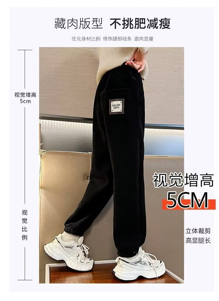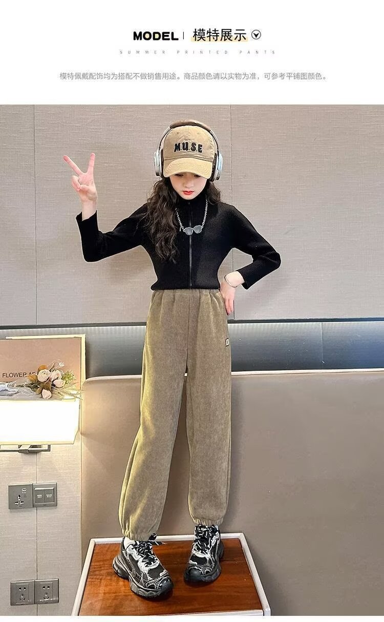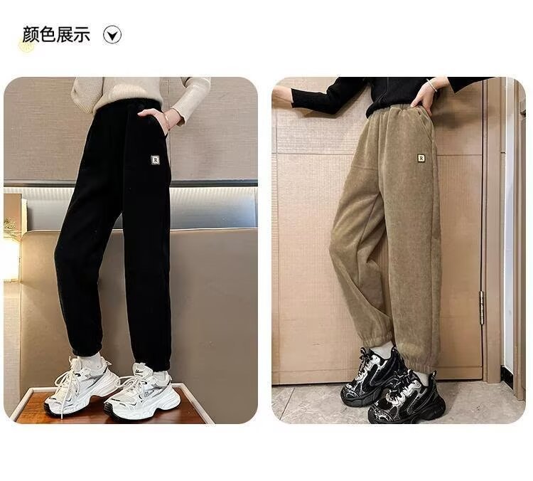 여자 바지 겨울 2024 코듀로이 기모 통합 벨벳 바지 캐주얼 바지 대형 어린이 느슨한 터프 바지스토어 가기