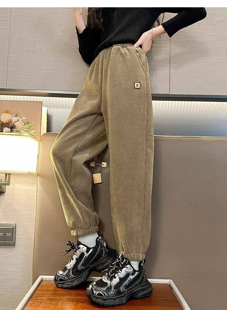 여자 바지 겨울 2024 코듀로이 기모 통합 벨벳 바지 캐주얼 바지 대형 어린이 느슨한 터프 바지