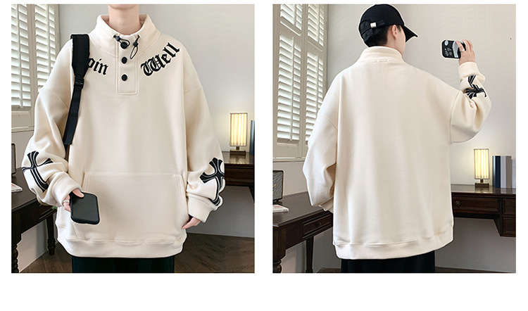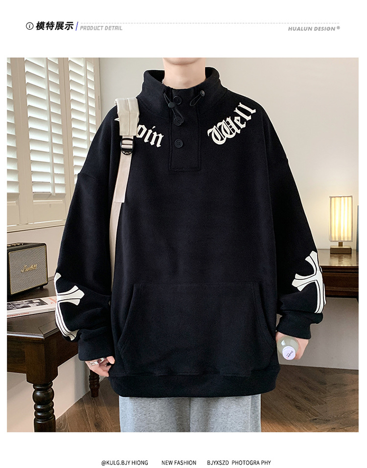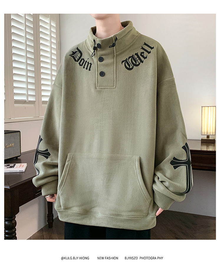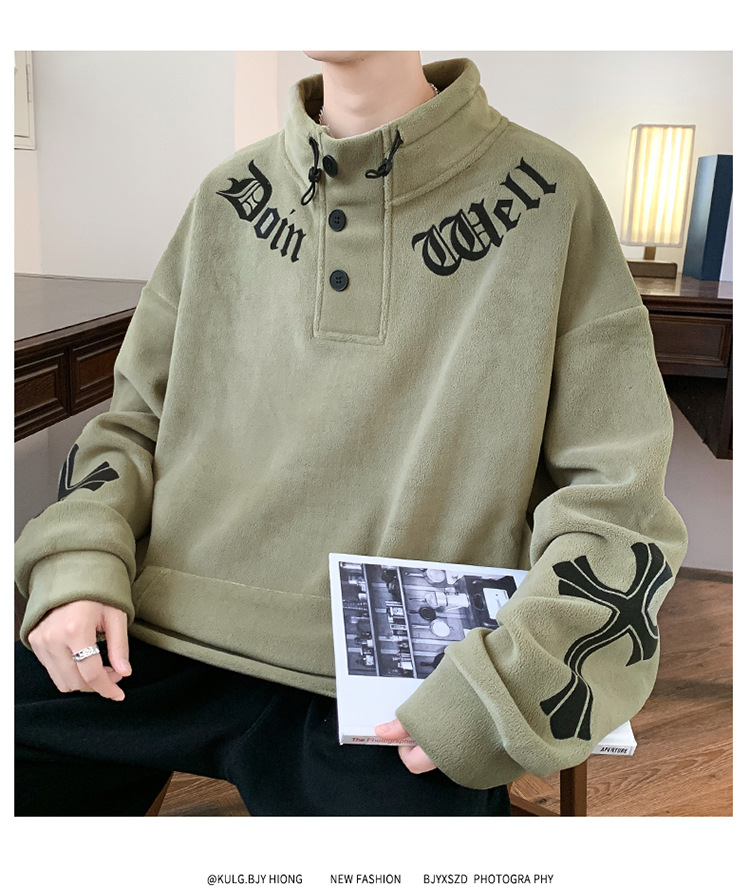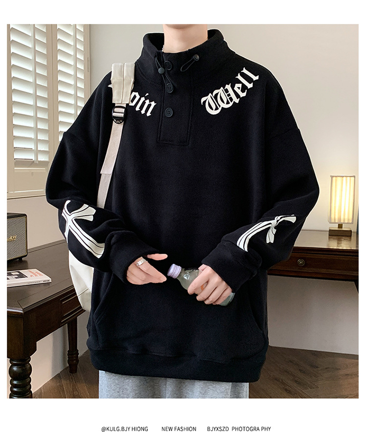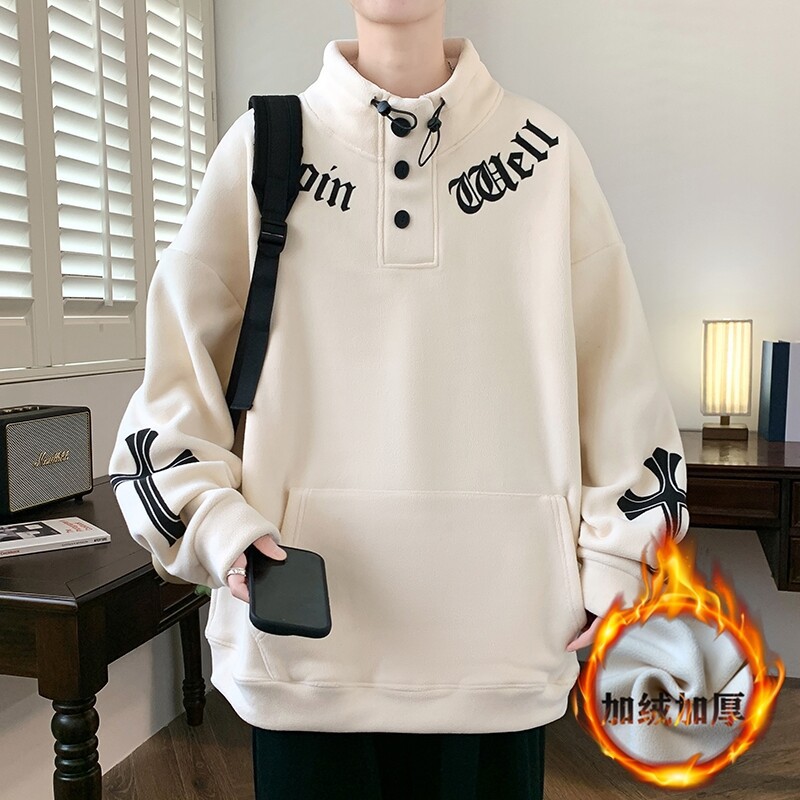 반 높이 칼라 양가죽 스웨트 셔츠 남자의 가을과 겨울 기모 두꺼운 유행 브랜드 십대 긴팔 양털 티셔츠스토어 가기
