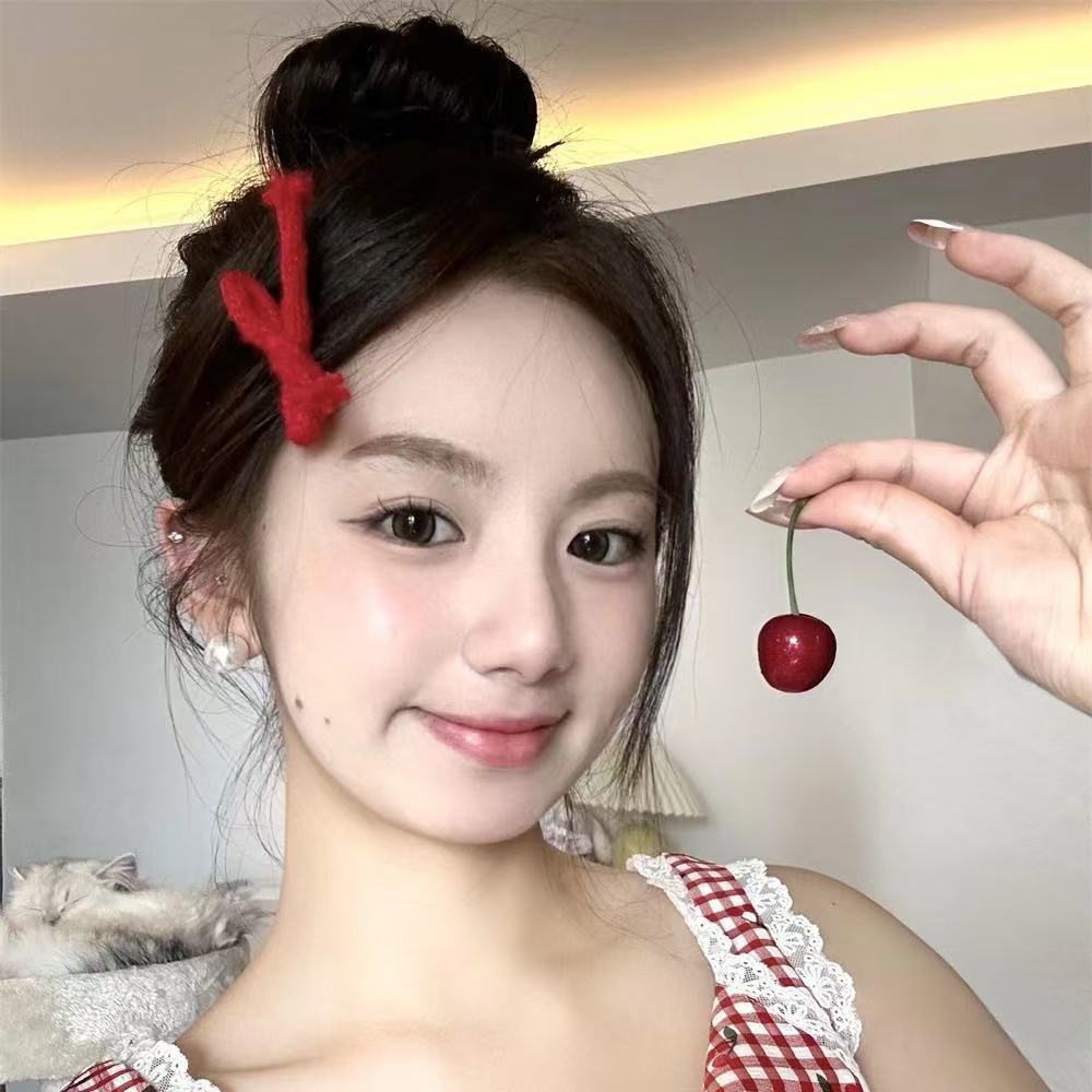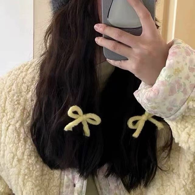 한국 캔디 컬러 활 울 헤어 클립 여성의 귀여운 솔리드 컬러 니트 뱅 클립 달콤한 컬러 소녀 헤어 액세서리