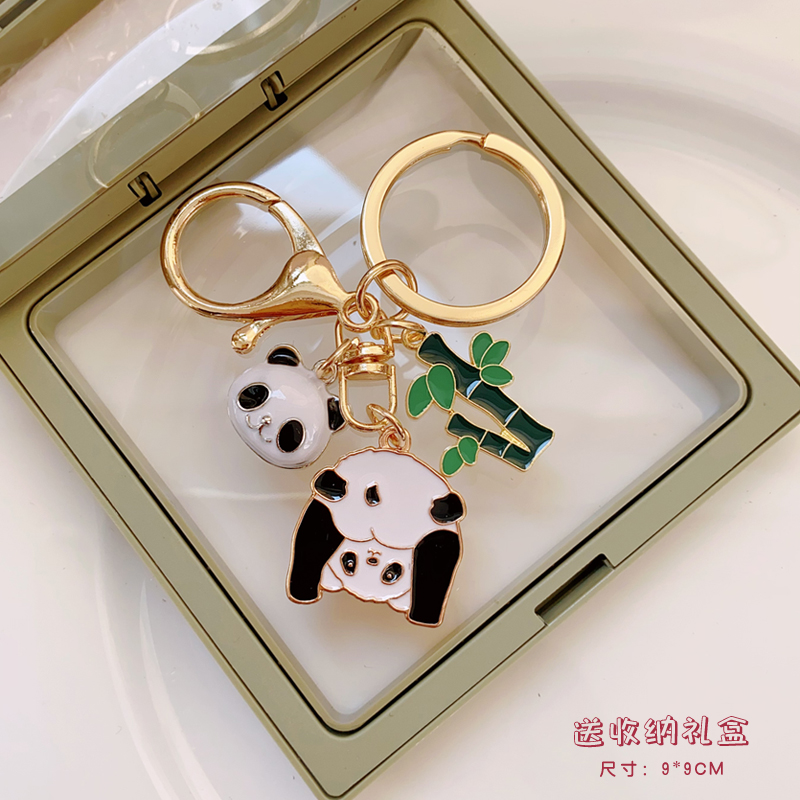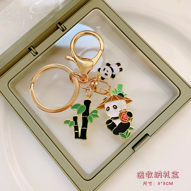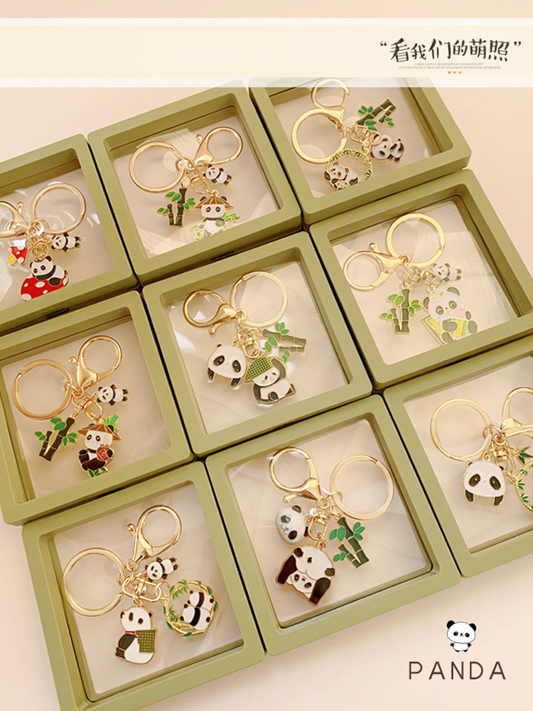 남성과 여성을위한 중국 스타일 귀여운 자이언트 팬더 키 체인 2024 새로운 Schoolbag 펜던트 펜던트 기념품 선물 작은스토어 가기