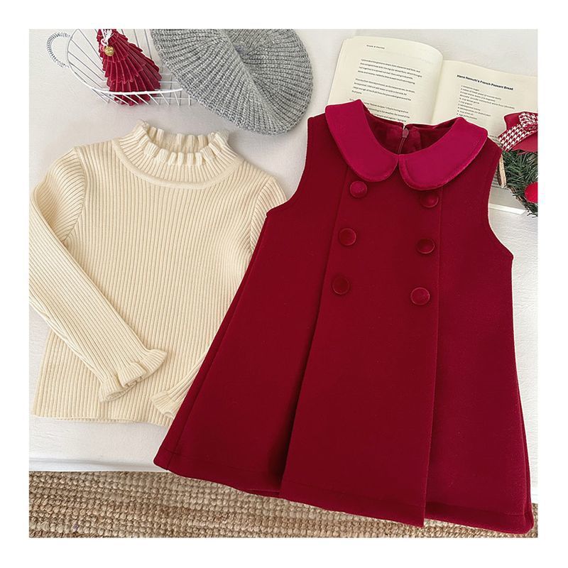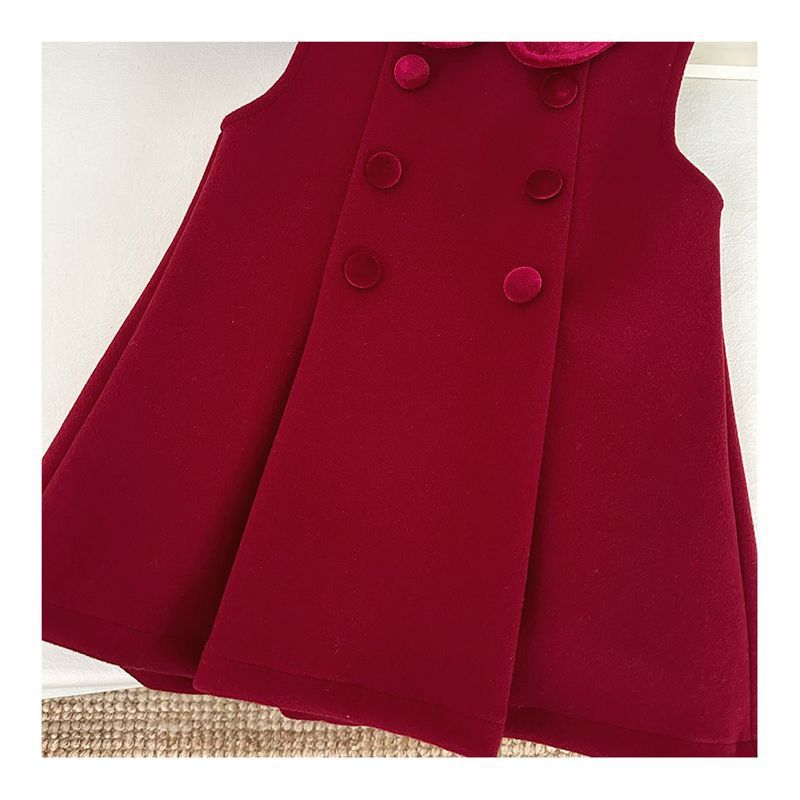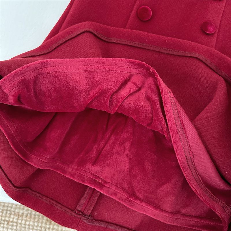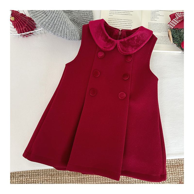 새로운 2024 여자 빨간 조끼 원피스 겨울 아기 기모 원피스 어린이 크리스마스 새해 축제 원피스 조수