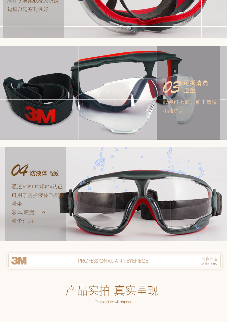 3M护目镜防风防尘沙防雾防液体喷溅防护眼镜透明镜片耐水洗GA501