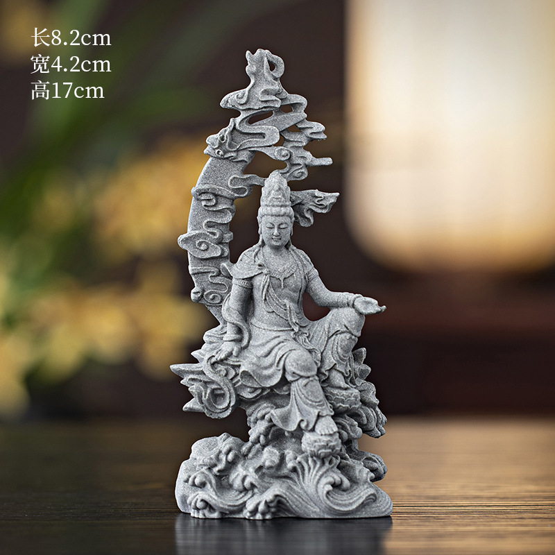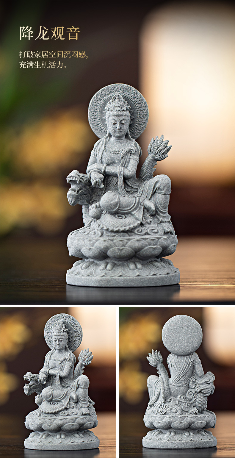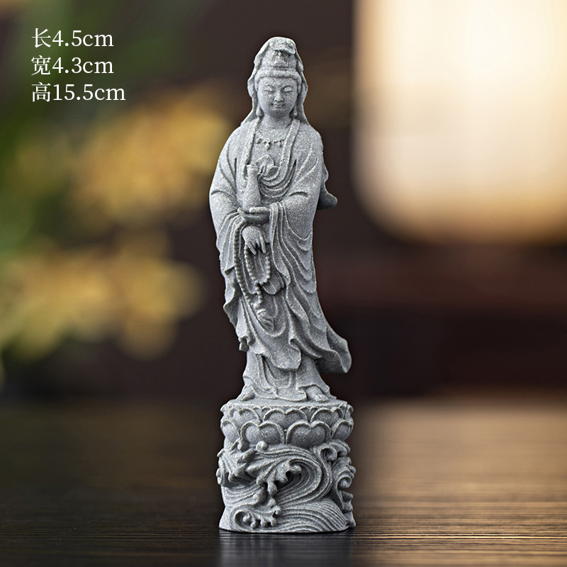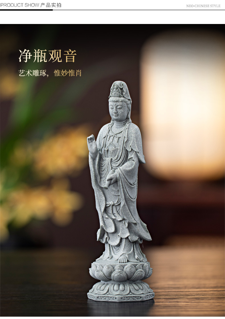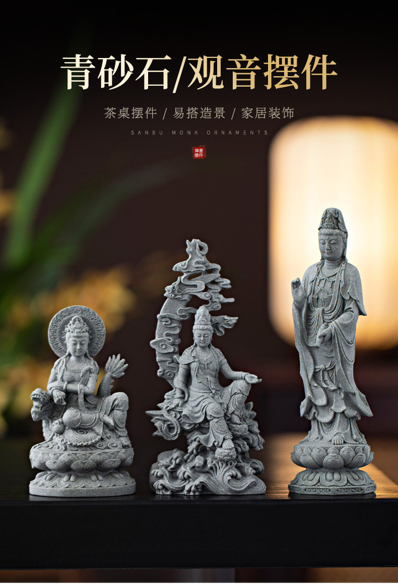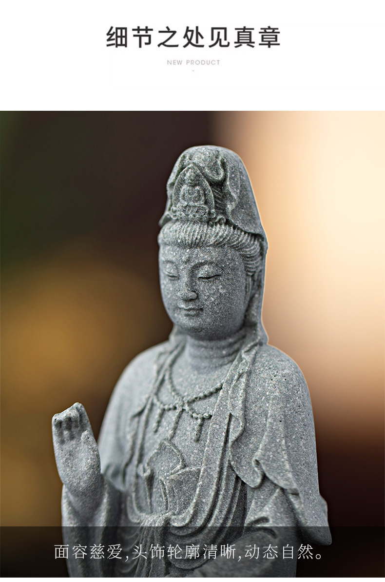 녹색 모래 돌 새로운 중국식 관음보살불상 홈 거실 입구 데스크탑 마스코트 장식 풍경 공예스토어 가기